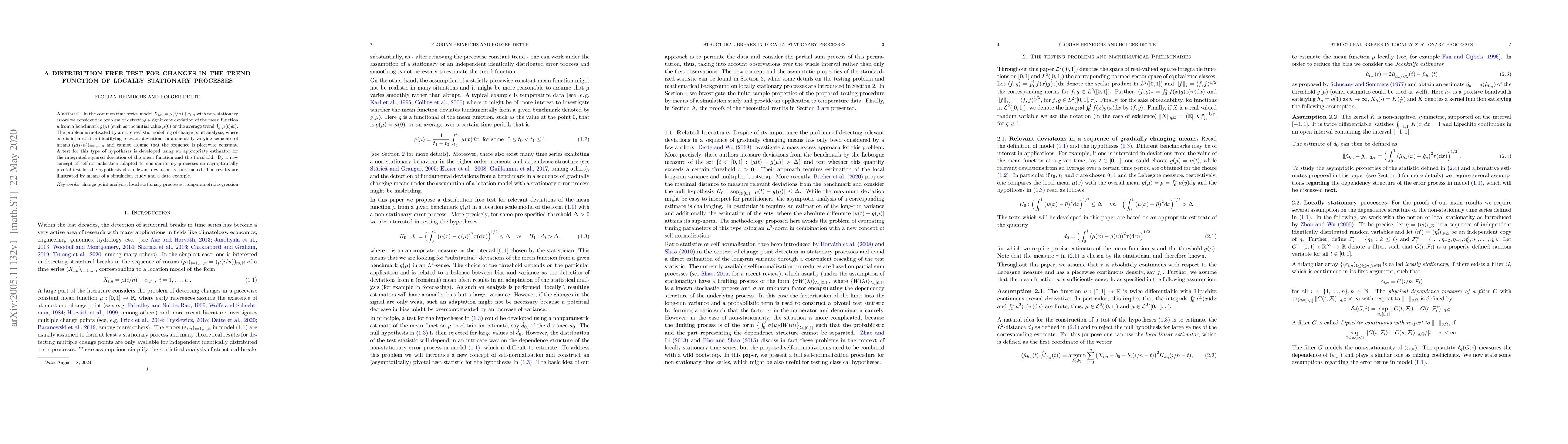 A new test is developed to detect significant deviations in a non-stationary time series trend function, enabling realistic change point analysis without assuming constant intervals.