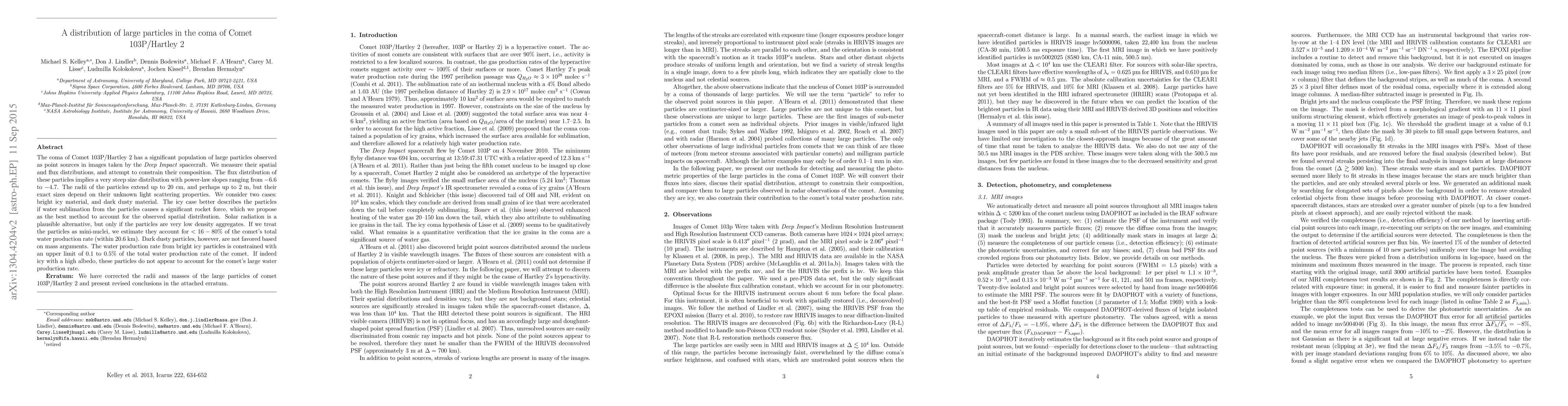 The coma of comet 103P/Hartley 2 has a significant population of large particles observed as point sources in images taken by the Deep Impact spacecraft. We measure their spatial and flux distributions, and attempt to constrain their composition. The flux distribution of these particles implies a very steep size distribution with power-law slopes ranging from -6.6 to -4.7. The radii of the particles extend up to 20 cm, and perhaps up to 2 m, but their exact sizes depend on their unknown light scattering properties. We consider two cases: bright icy material, and dark dusty material. The icy case better describes the particles if water sublimation from the particles causes a significant rocket force, which we propose as the best method to account for the observed spatial distribution. Solar radiation is a plausible alternative, but only if the particles are very low density aggregates. If we treat the particles as mini-nuclei, we estimate they account for <16-80% of the comet's total water production rate (within 20.6 km). Dark dusty particles, however, are not favored based on mass arguments. The water production rate from bright icy particles is constrained with an upper limit of 0.1 to 0.5% of the total water production rate of the comet. If indeed icy with a high albedo, these particles do not appear to account for the comet's large water production rate. production rate. Erratum: We have corrected the radii and masses of the large particles of comet 103P/Hartley 2 and present revised conclusions in the attached erratum.
