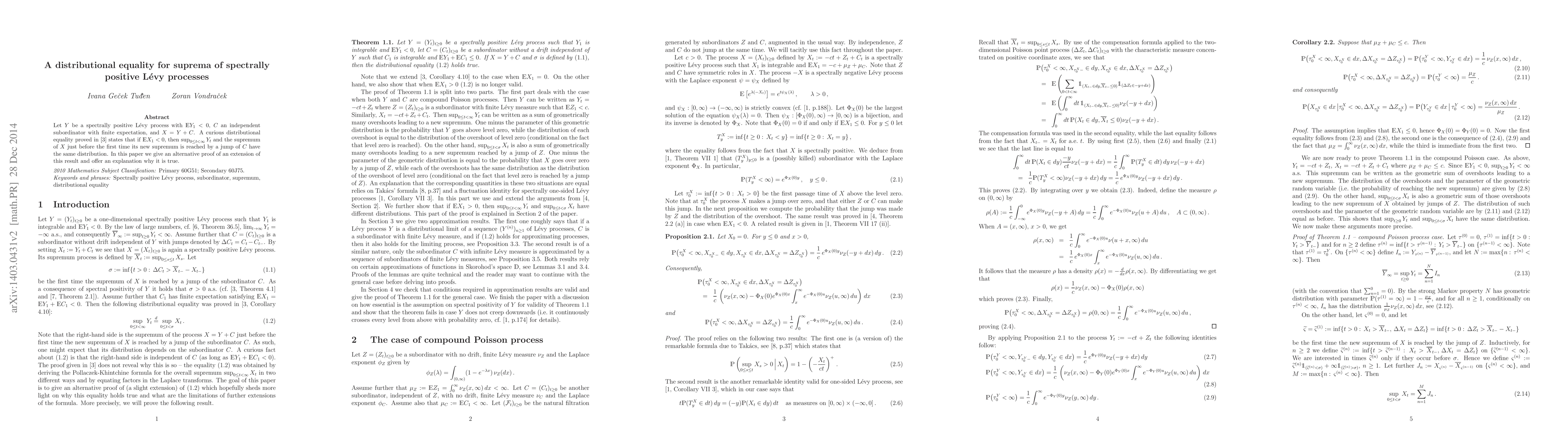 This paper provides an alternative proof for the distributional equality concerning the suprema of a spectrally positive Lévy process $Y$ and a modified process $X=Y+C$, where $C$ is an independent subordinator. The result extends a previous finding by Huzak et al. and offers insight into why this equality holds.