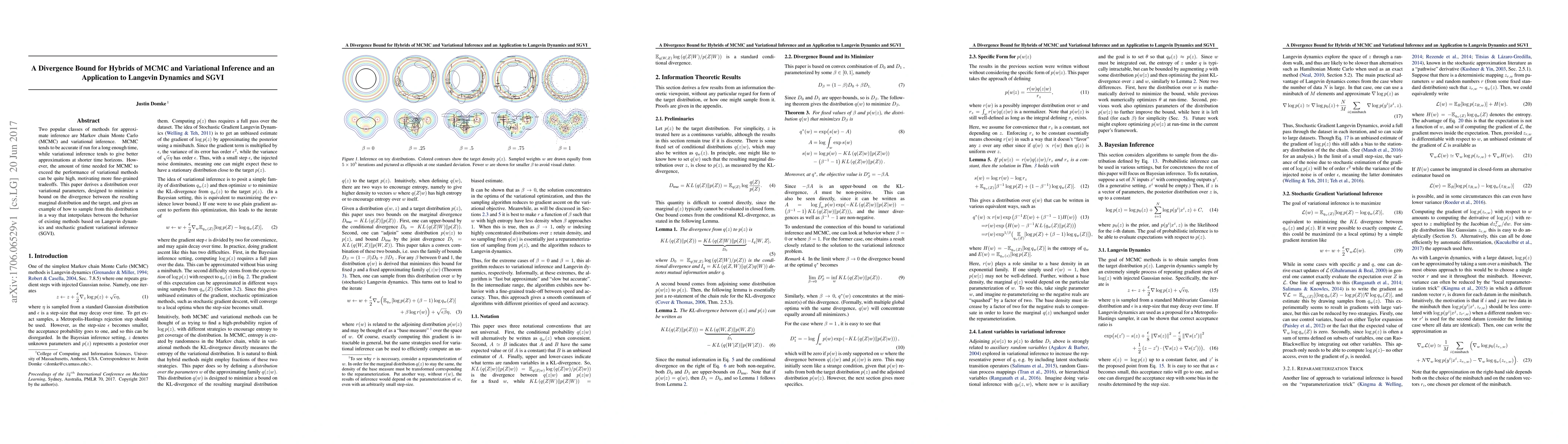 This paper introduces a method that combines MCMC and variational inference to balance accuracy and efficiency, deriving a divergence bound and demonstrating its application through Langevin dynamics and SGVI. The approach aims to interpolate the strengths of both methods for improved approximate inference.