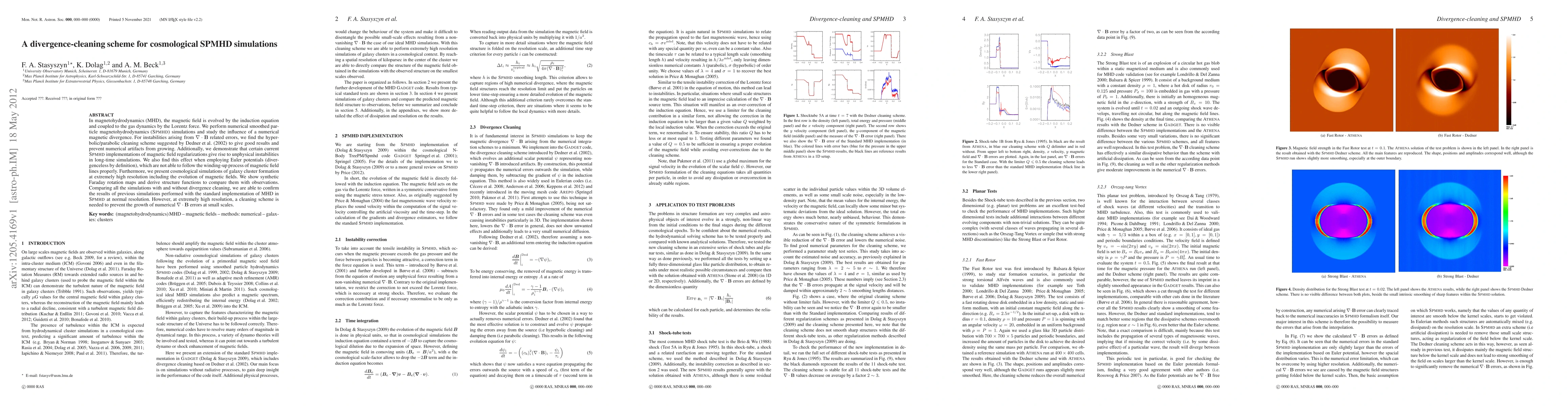 In magnetohydrodynamics (MHD), the magnetic field is evolved by the induction equation and coupled to the gas dynamics by the Lorentz force. We perform numerical smoothed particle magnetohydrodynamics (Spmhd) simulations and study the influence of a numerical magnetic divergence. For instabilities arising from divergence B related errors, we find the hyperbolic/parabolic cleaning scheme suggested by Dedner et al. 2002 to give good results and prevent numerical artifacts from growing. Additionally, we demonstrate that certain current Spmhd implementations of magnetic field regularizations give rise to unphysical instabilities in long-time simulations. We also find this effect when employing Euler potentials (divergenceless by definition), which are not able to follow the winding-up process of magnetic field lines properly. Furthermore, we present cosmological simulations of galaxy cluster formation at extremely high resolution including the evolution of magnetic fields. We show synthetic Faraday rotation maps and derive structure functions to compare them with observations. Comparing all the simulations with and without divergence cleaning, we are able to confirm the results of previous simulations performed with the standard implementation of MHD in Spmhd at normal resolution. However, at extremely high resolution, a cleaning scheme is needed to prevent the growth of numerical errors at small scales.