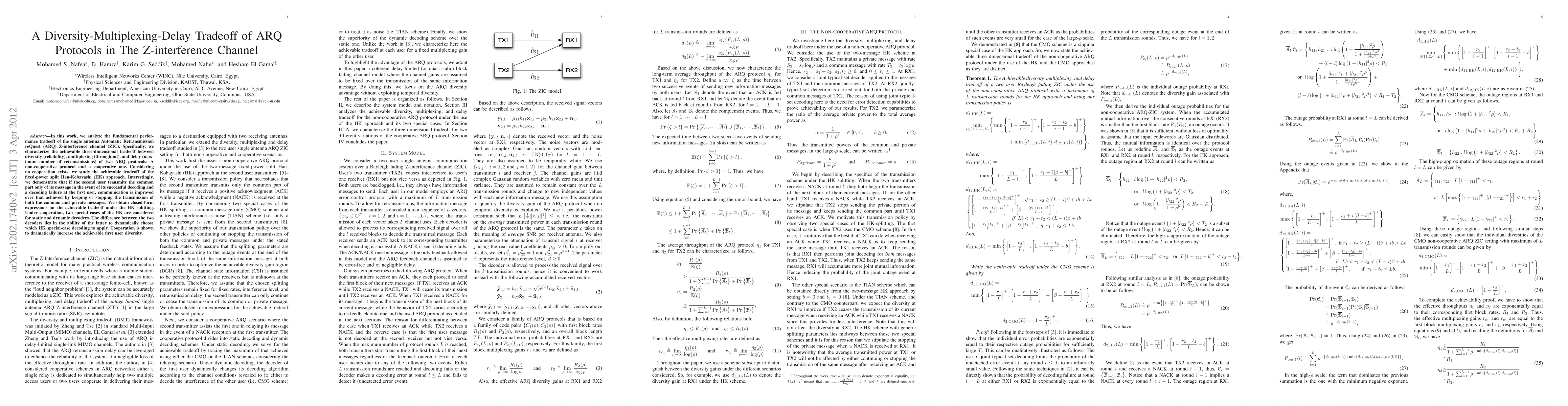 This paper analyzes the performance tradeoff of ARQ protocols in the Z-interference channel, focusing on the diversity-multiplexing-delay tradeoff. It compares non-cooperative and cooperative protocols, showing that cooperative protocols significantly enhance first user diversity through dynamic decoding strategies.