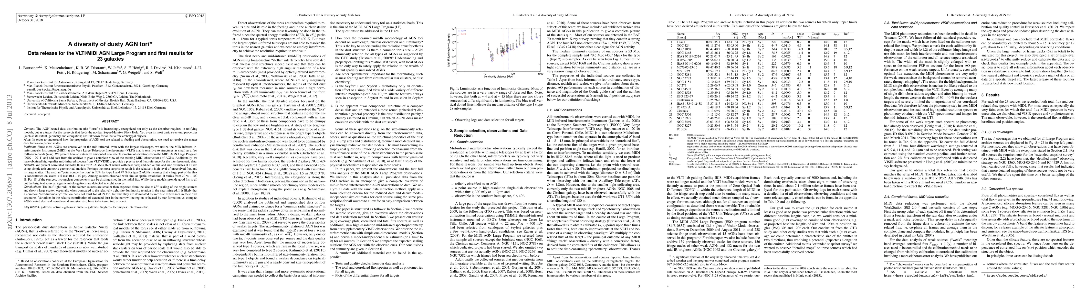 The AGN-heated dust distribution (the "torus") is increasingly recognized not only as the absorber required in unifying models, but as a tracer for the reservoir that feeds the nuclear Super-Massive Black Hole. Yet, even its most basic structural properties (such as its extent, geometry and elongation) are unknown for all but a few archetypal objects. Since most AGNs are unresolved in the mid-infrared, we utilize the MID-infrared interferometric Instrument (MIDI) at the Very Large Telescope Interferometer (VLTI) that is sensitive to structures as small as a few milli-arcseconds (mas). We present here an extensive amount of new interferometric observations from the MIDI AGN Large Program (2009 - 2011) and add data from the archive to give a complete view of the existing MIDI observations of AGNs. Additionally, we have obtained high-quality mid-infrared spectra from VLT/VISIR. We present correlated and total flux spectra for 23 AGNs and derive flux and size estimates at 12 micron using simple axisymmetric geometrical models. Perhaps the most surprising result is the relatively high level of unresolved flux and its large scatter: The median "point source fraction" is 70 % for type 1 and 47 % for type 2 AGNs meaning that a large part of the flux is concentrated on scales smaller than about 5 mas (0.1 - 10 pc). Among sources observed with similar spatial resolution, it varies from 20 % - 100 %. For 18 of the sources, two nuclear components can be distinguished in the radial fits. While these models provide good fits to all but the brightest sources, significant elongations are detected in eight sources. The half-light radii of the fainter sources are smaller than expected from the size ~ L^0.5 scaling of the bright sources and show a large scatter, especially when compared to the relatively tight size--luminosity relation in the near-infrared.
