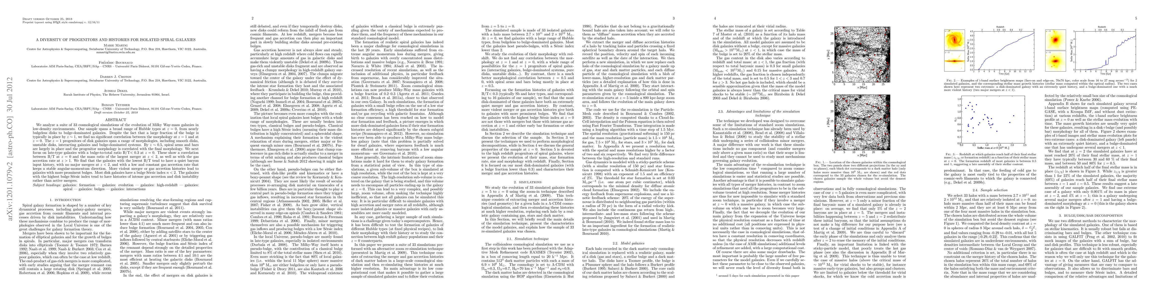 We analyze a suite of 33 cosmological simulations of the evolution of Milky Way-mass galaxies in low-density environments. Our sample spans a broad range of Hubble types at z=0, from nearly bulgeless disks to bulge-dominated galaxies. Despite the fact that a large fraction of the bulge is typically in place by z=1, we find no significant correlation between the morphology at z=1 and at z=0. The z=1 progenitors of disk galaxies span a range of morphologies, including smooth disks, unstable disks, interacting galaxies and bulge-dominated systems. By z=0.5, spiral arms and bars are largely in place and the progenitor morphology is correlated with the final morphology. We next focus on late-type galaxies with a bulge-to-total ratio B/T<0.3 at z=0. These show a correlation between B/T at z=0 and the mass ratio of the largest merger at z<2, as well as with the gas accretion rate at z>1. We find that the galaxies with the lowest B/T tend to have a quiet baryon input history, with no major mergers at z<2, and with a low and constant gas accretion rate that keeps a stable angular-momentum direction. More violent merger or gas accretion histories lead to galaxies with more prominent bulges. Most disk galaxies have a bulge Sersic index n<2. The galaxies with the highest bulge Sersic index tend to have histories of intense gas accretion and disk instability rather than active mergers.