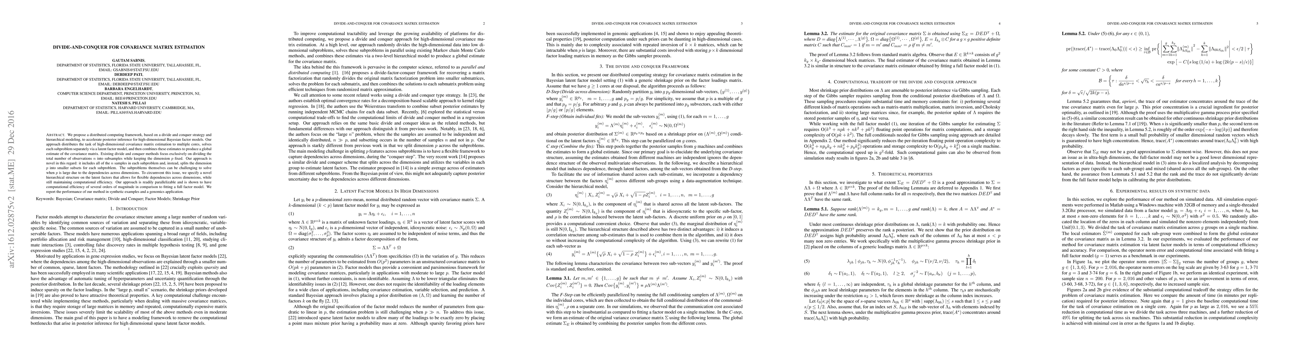 We propose a distributed computing framework, based on a divide and conquer strategy and hierarchical modeling, to accelerate posterior inference for high-dimensional Bayesian factor models. Our approach distributes the task of high-dimensional covariance matrix estimation to multiple cores, solves each subproblem separately via a latent factor model, and then combines these estimates to produce a global estimate of the covariance matrix. Existing divide and conquer methods focus exclusively on dividing the total number of observations $n$ into subsamples while keeping the dimension $p$ fixed. Our approach is novel in this regard: it includes all of the $n$ samples in each subproblem and, instead, splits the dimension $p$ into smaller subsets for each subproblem. The subproblems themselves can be challenging to solve when $p$ is large due to the dependencies across dimensions. To circumvent this issue, we specify a novel hierarchical structure on the latent factors that allows for flexible dependencies across dimensions, while still maintaining computational efficiency. Our approach is readily parallelizable and is shown to have computational efficiency of several orders of magnitude in comparison to fitting a full factor model. We report the performance of our method in synthetic examples and a genomics application.