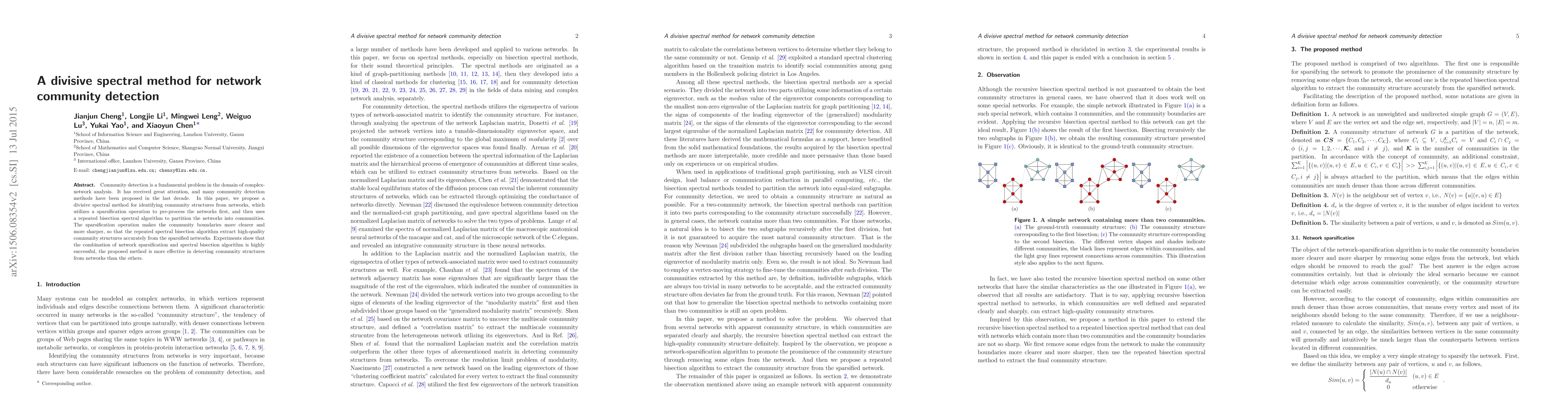 This paper proposes a divisive spectral method for network community detection that employs network sparsification to enhance community boundaries, followed by a repeated bisection spectral algorithm to partition the network into communities. Experimental results demonstrate the method's superior effectiveness in identifying community structures compared to existing techniques.