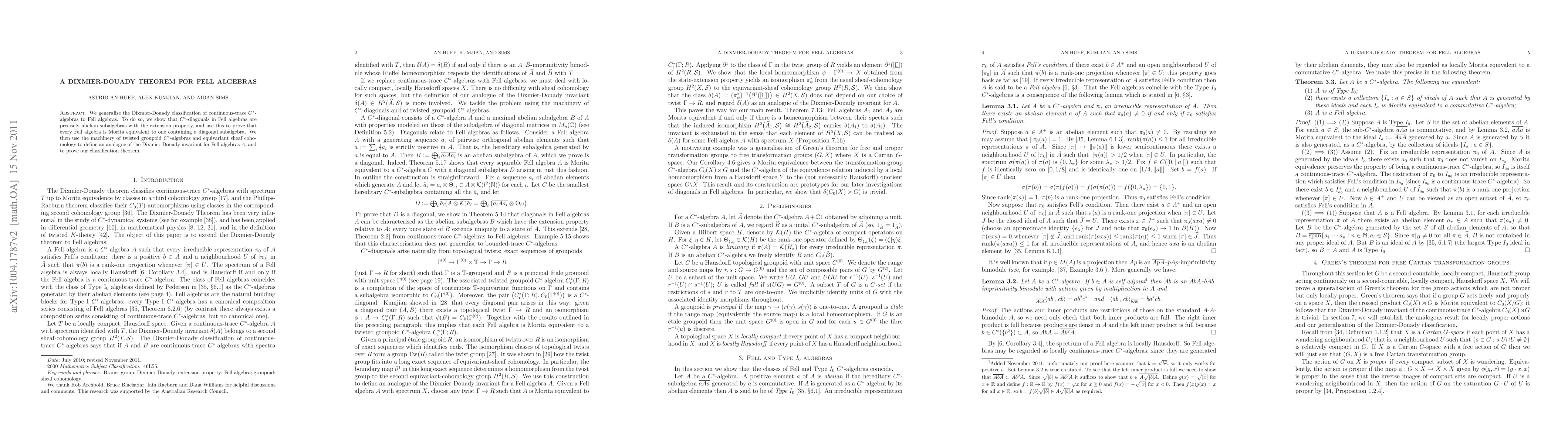 The research generalizes the Dixmier-Douady classification for C*-algebras to Fell algebras by showing that C*-diagonals in Fell algebras are precisely abelian subalgebras with the extension property. It uses the machinery of twisted groupoid C*-algebras and equivariant sheaf cohomology to define the Dixmier-Douady invariant of a Fell algebra A and to prove the classification theorem.