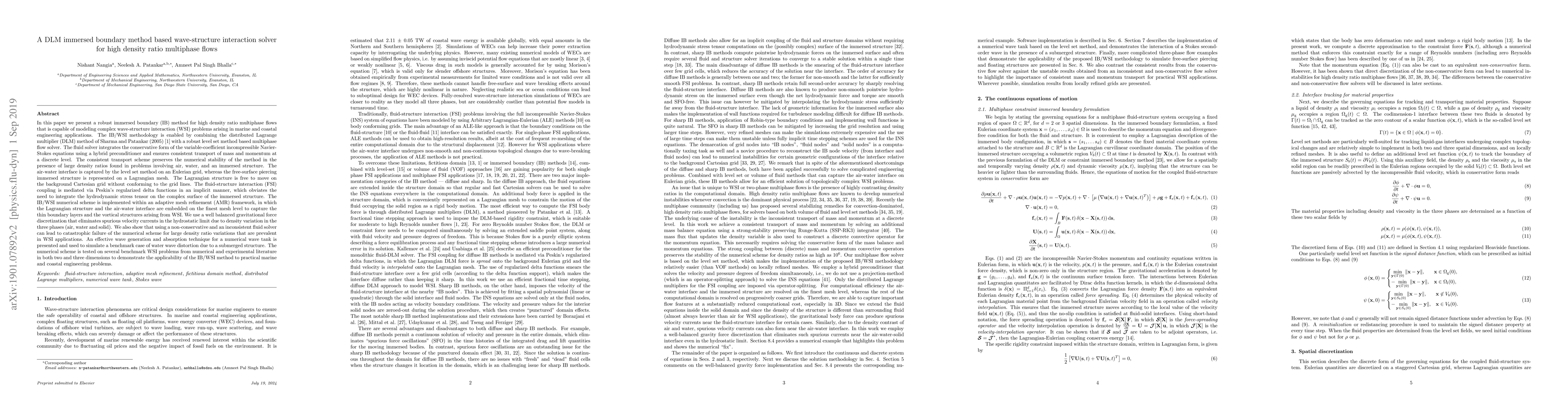 This paper introduces a robust immersed boundary method combining the DLM technique with a level set method to model high density ratio multiphase flows for wave-structure interaction problems. The method ensures stable mass and momentum transport, captures the air-water interface, and simulates fluid-structure interactions without integrating hydrodynamic stress tensors, validated through a benchmark case of wave distortion by a submerged structure.