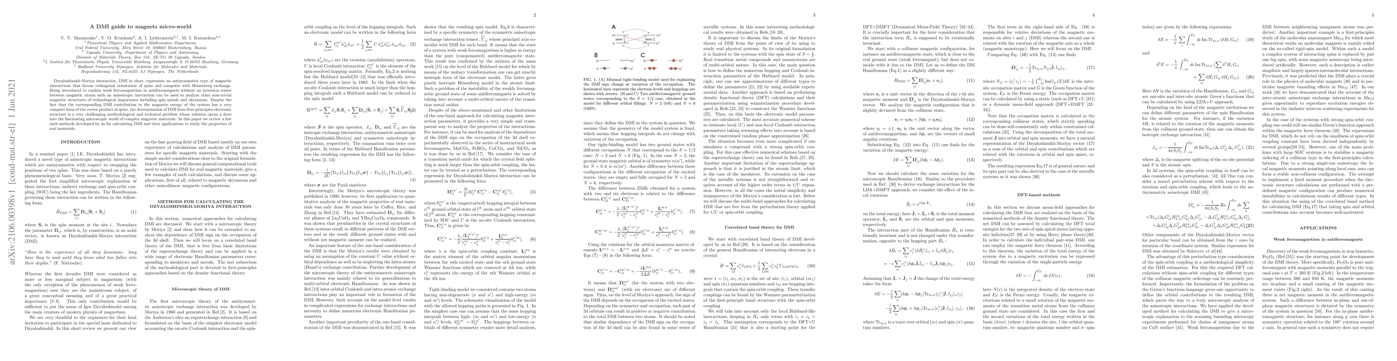 This paper reviews methods to calculate Dzyaloshinskii-Moriya interaction (DMI) from first-principles electronic structure, enabling the study of complex magnetic materials like spin spirals and skyrmions.