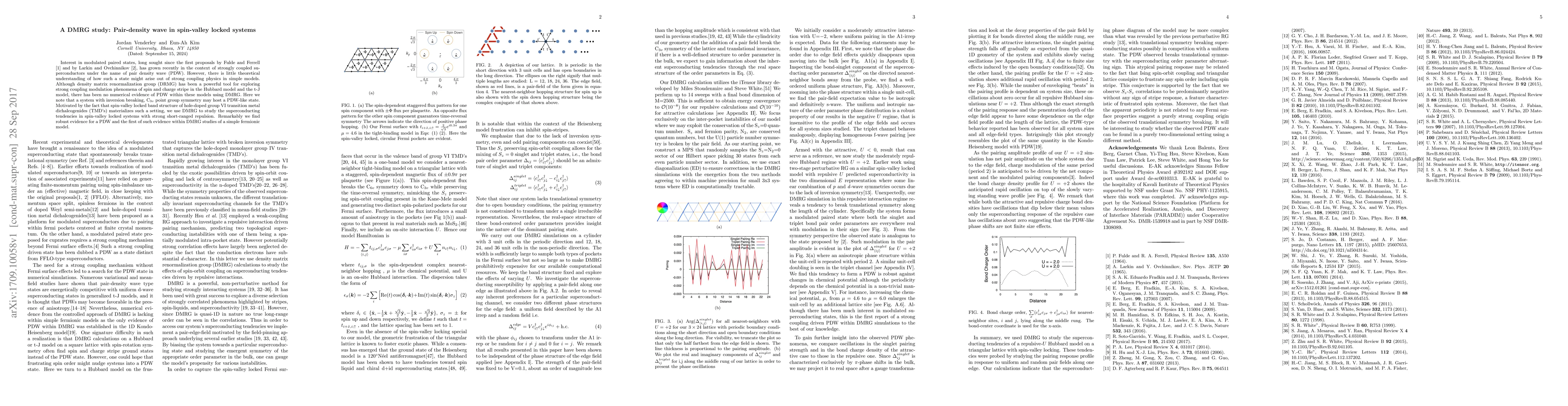 Interest in modulated paired states, long sought since the first proposals by Fulde and Ferrell and by Larkin and Ovchinnikov, has grown recently in the context of strongly coupled superconductors under the name of pair density wave. However, there is little theoretical understanding of how such a state might arise out of strong coupling physics in simple models. Although density matrix renormalization group has been a powerful tool for exploring strong coupling modulation phenomena of spin and charge stripe in the Hubbard model and the t-J model, there has been no numerical evidence of PDW within these models using DMRG. Here we note that a system with inversion breaking, C3v point group symmetry may host a PDW-like state. Motivated by the fact that spin-valley locked band structure of hole-doped group VI transition metal dichalcogenides materializes such a setting, we use DMRG to study the superconducting tendencies in spin-valley locked systems with strong short-ranged repulsion. Remarkably we find robust evidence for a PDW and the first of such evidence within DMRG studies of a simple fermionic model.