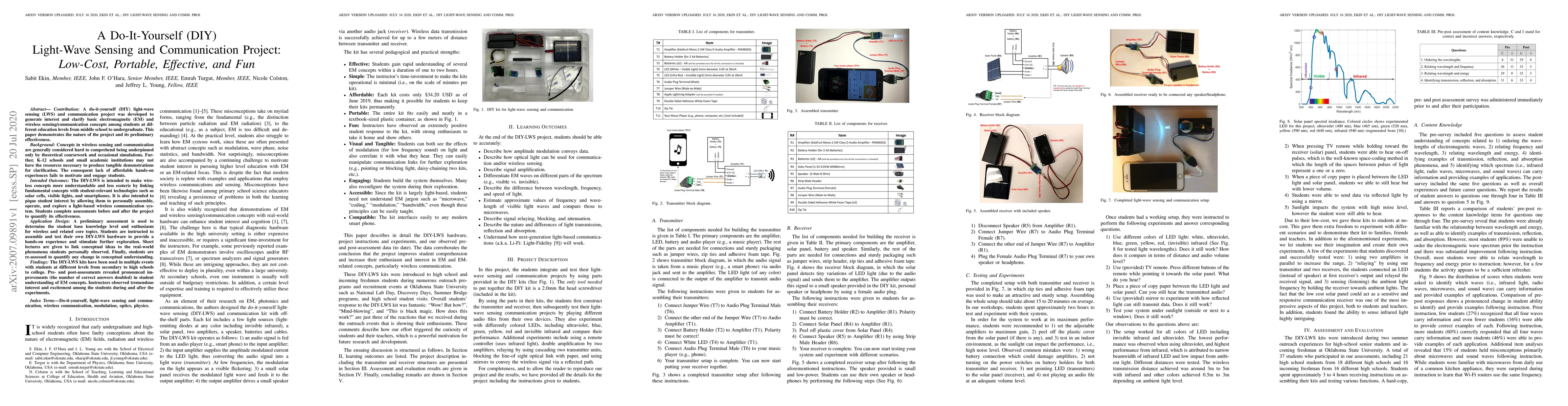 This study developed an affordable, hands-on DIY light-wave sensing kit to help students better understand wireless communication and electromagnetic concepts, resulting in doubled correct responses and increased engagement. The approach effectively makes complex ideas more accessible and sparks student interest across various education levels.
