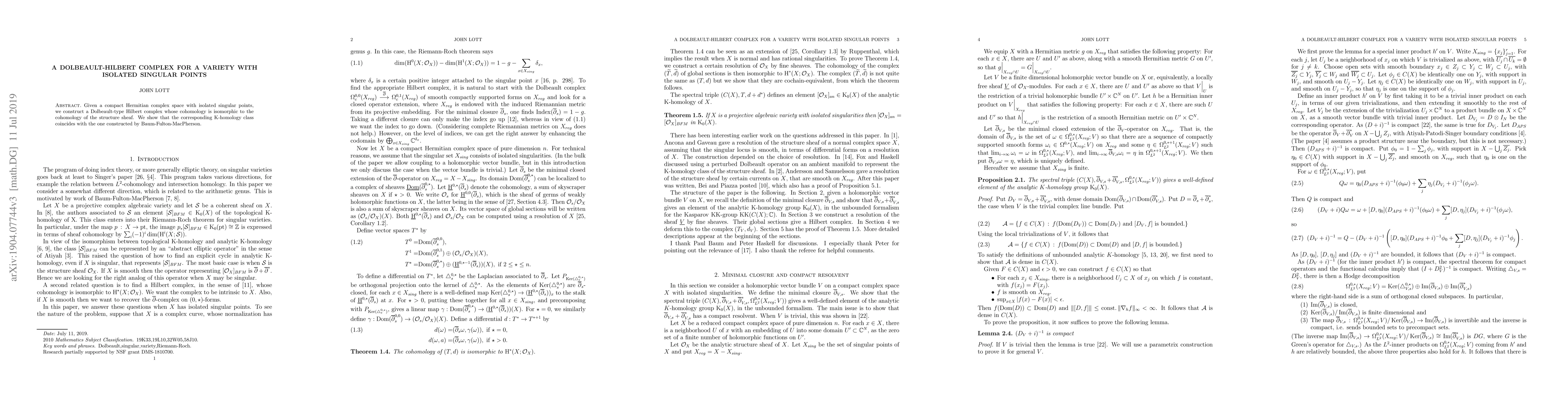 Given a compact Hermitian complex space with isolated singular points, we construct a Dolbeault-type Hilbert complex whose cohomology is isomorphic to the cohomology of the structure sheaf. We show that the corresponding K-homology class coincides with the one constructed by Baum-Fulton-MacPherson.