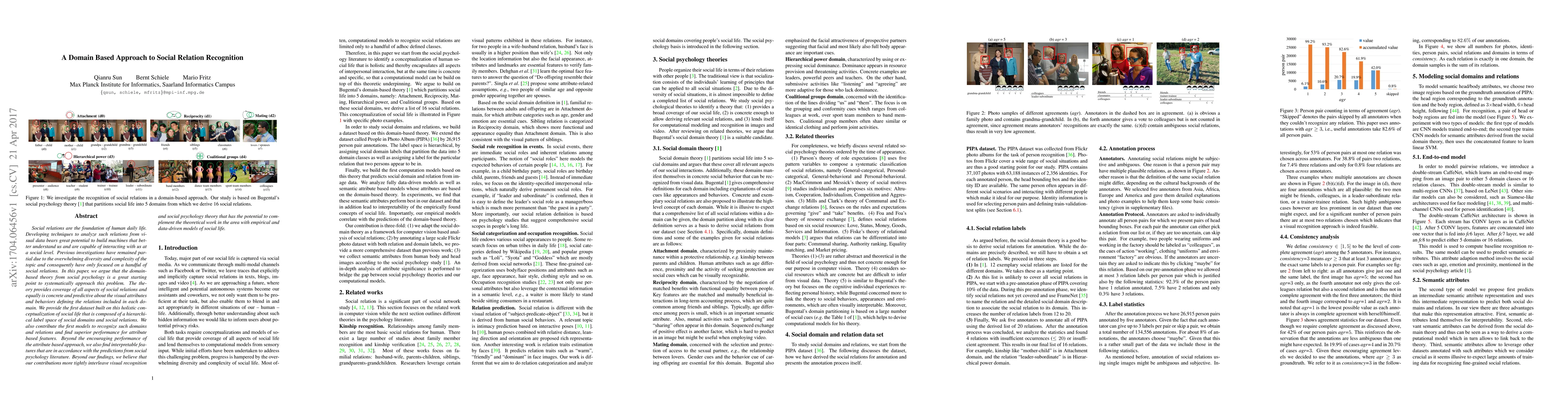 Social relations are the foundation of human daily life. Developing techniques to analyze such relations from visual data bears great potential to build machines that better understand us and are capable of interacting with us at a social level. Previous investigations have remained partial due to the overwhelming diversity and complexity of the topic and consequently have only focused on a handful of social relations. In this paper, we argue that the domain-based theory from social psychology is a great starting point to systematically approach this problem. The theory provides coverage of all aspects of social relations and equally is concrete and predictive about the visual attributes and behaviors defining the relations included in each domain. We provide the first dataset built on this holistic conceptualization of social life that is composed of a hierarchical label space of social domains and social relations. We also contribute the first models to recognize such domains and relations and find superior performance for attribute based features. Beyond the encouraging performance of the attribute based approach, we also find interpretable features that are in accordance with the predictions from social psychology literature. Beyond our findings, we believe that our contributions more tightly interleave visual recognition and social psychology theory that has the potential to complement the theoretical work in the area with empirical and data-driven models of social life.