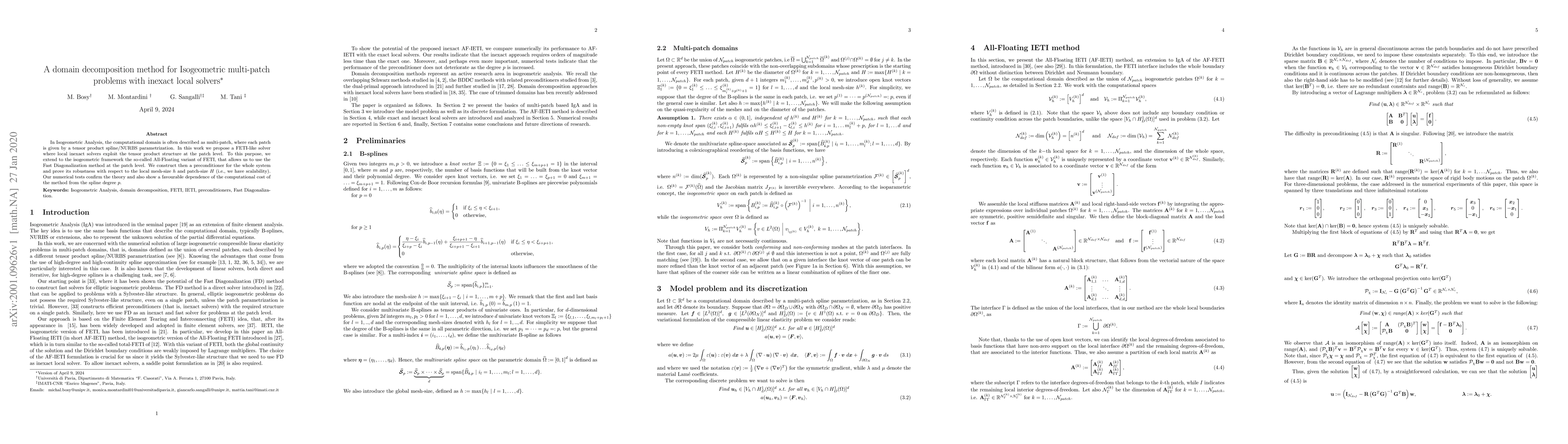 This paper proposes a FETI-like solver for Isogeometric Analysis involving multi-patch problems, utilizing inexact local solvers that leverage tensor product splines. The All-Floating variant of FETI is extended to the isogeometric framework, demonstrating robustness and scalability.