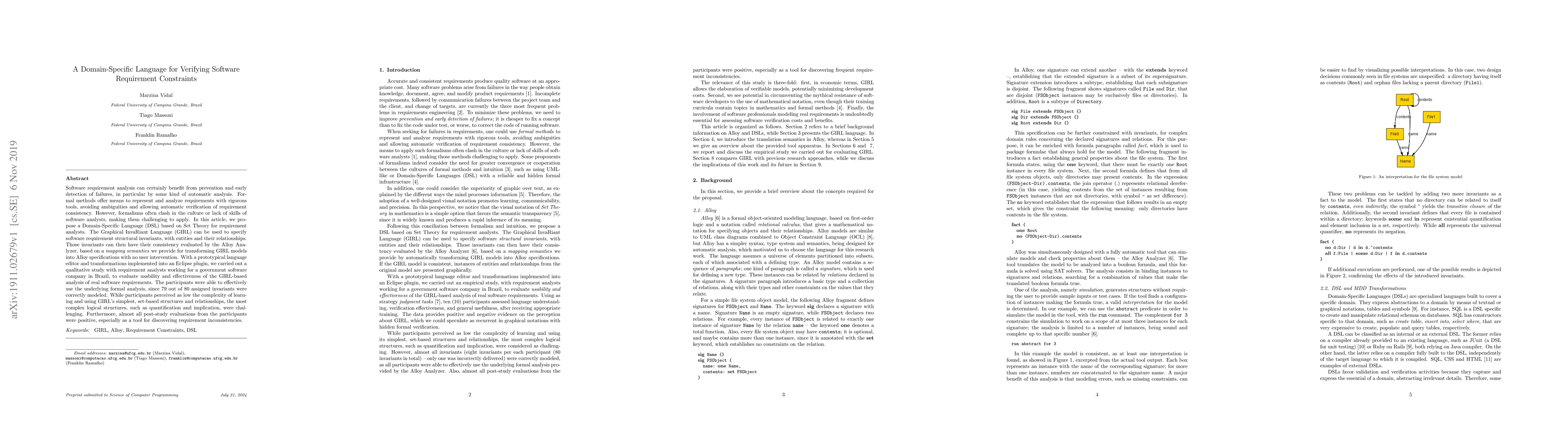This paper proposes a Domain-Specific Language (DSL) called GIRL based on Set Theory to simplify formal methods for software requirement verification. The study found that analysts could effectively use GIRL to model and verify requirements, with high success in simpler constructs but challenges in more complex logical structures.