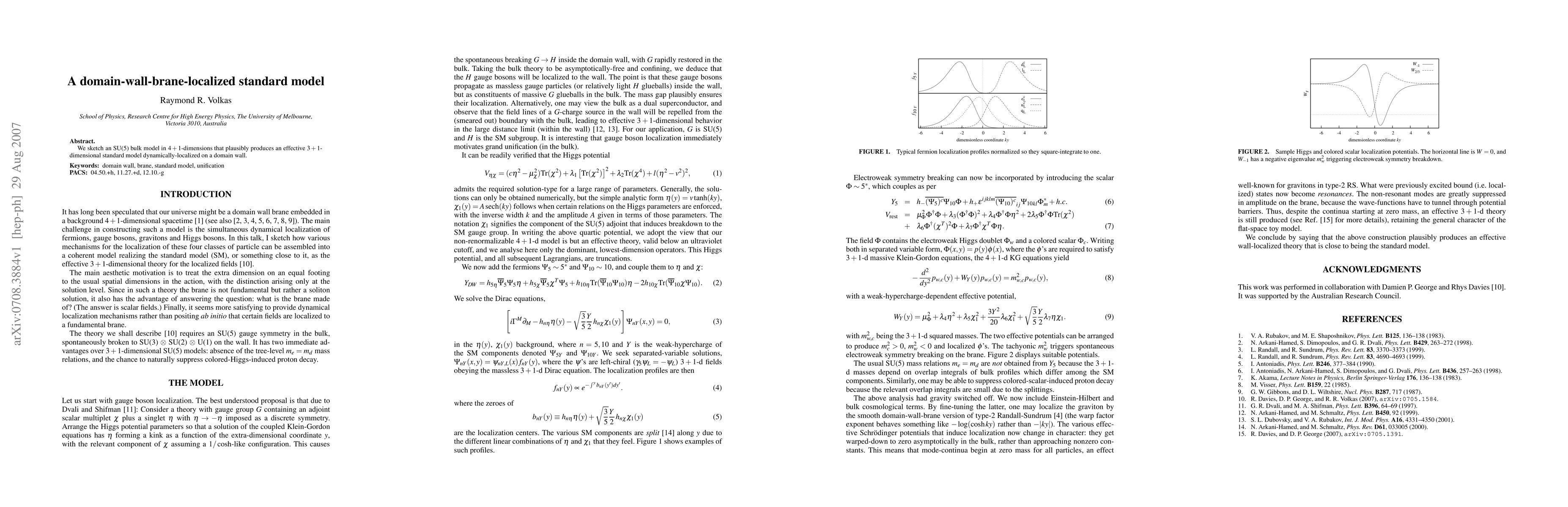 We sketch an SU(5) bulk model in 4+1-dimensions that plausibly produces an effective 3+1-dimensional standard model dynamically-localized on a domain wall.