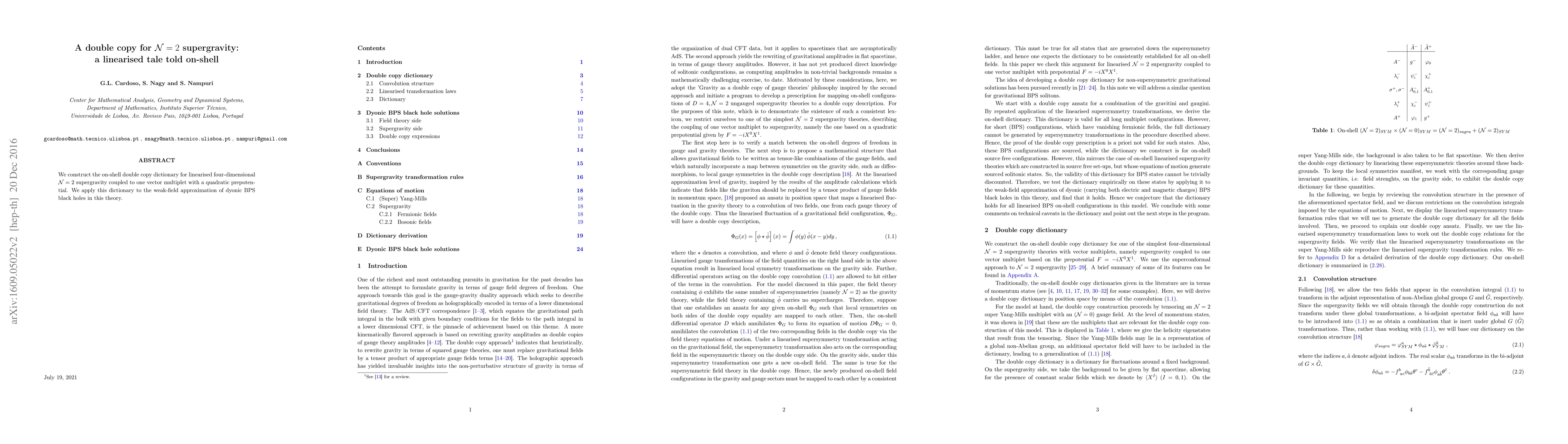 This paper constructs an on-shell double copy for linearised four-dimensional ${\cal N}=2$ supergravity coupled to a vector multiplet, using a quadratic prepotential. It applies this method to analyze the weak-field approximation of dyonic BPS black holes within this theoretical framework.
