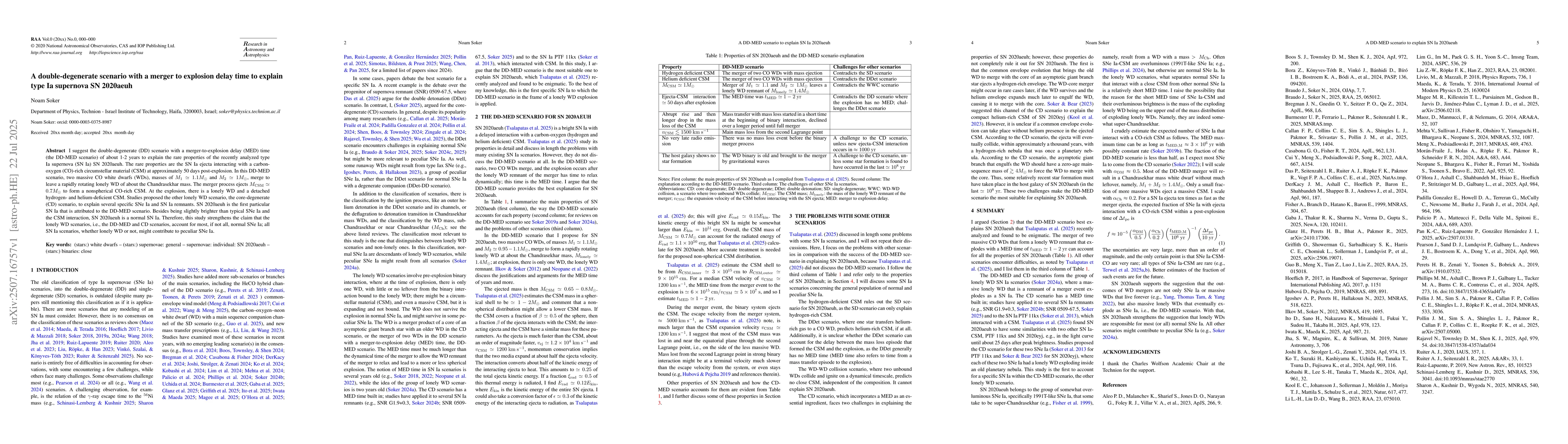 I suggest the double-degenerate (DD) scenario with a merger-to-explosion delay (MED) time (the DD-MED scenario) of about 1-2 years to explain the rare properties of the recently analyzed type Ia supernova (SN Ia) SN 2020aeuh. The rare properties are the SN Ia ejecta interacting with a carbon-oxygen (CO)-rich circumstellar material (CSM) at approximately 50 days post-explosion. In this DD-MED scenario, two massive CO white dwarfs (WDs), masses of M1=1.1Mo and M2=1, merge to leave a rapidly rotating lonely WD of about the Chandrasekhar mass. The merger process ejects 0.7Mo to form a nonspherical CO-rich CSM. At the explosion, there is a lonely WD and a detached hydrogen- and helium-deficient CSM. Studies proposed the other lonely WD scenario, the core-degenerate (CD) scenario, to explain several specific SNe Ia and SN Ia remnants. SN 2020aeuh is the first particular SN Ia that is attributed to the DD-MED scenario. Besides being slightly brighter than typical SNe Ia and the CSM interaction, SN 2020aeuh is a normal SN Ia. Therefore, this study strengthens the claim that the lonely WD scenarios, i.e., the DD-MED and CD scenarios, account for most, if not all, normal SNe Ia; all SN Ia scenarios, whether lonely WD or not, might contribute to peculiar SNe Ia.