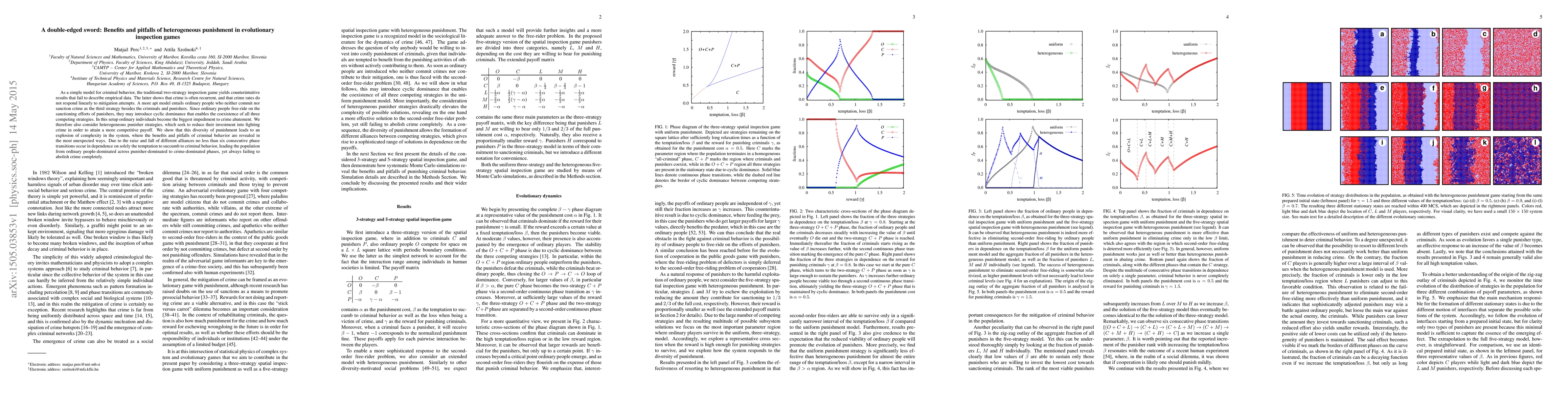 This paper explores a three-strategy evolutionary inspection game model, introducing ordinary individuals who free-ride on punishers, leading to cyclic dominance and complex dynamics. It examines heterogeneous punishment strategies, revealing unexpected benefits and pitfalls that cause multiple phase transitions, ultimately failing to eradicate crime entirely.