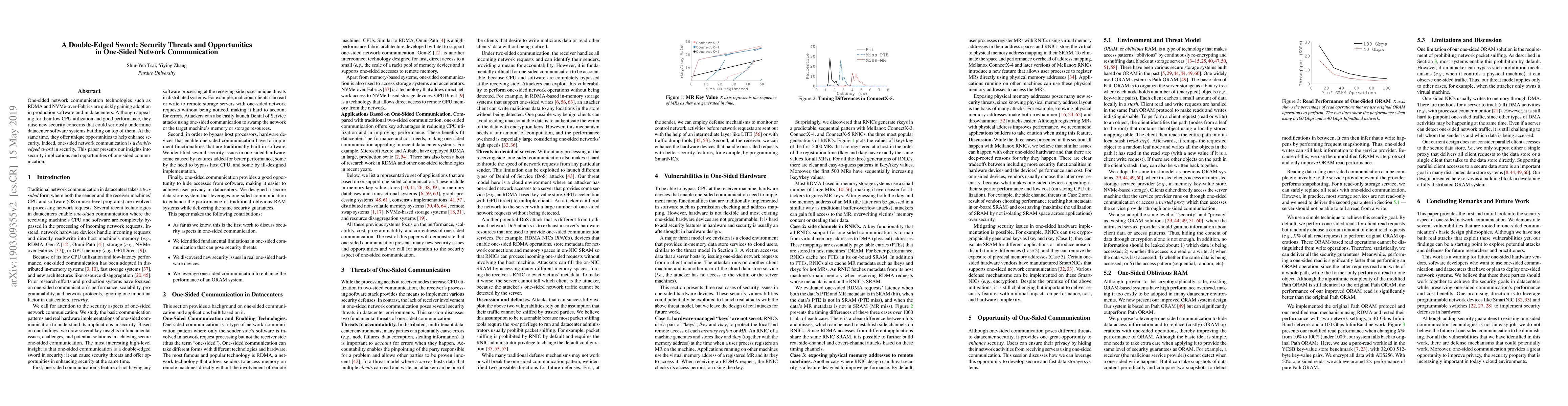This paper explores the dual nature of one-sided network communication technologies like RDMA and NVMe-over-Fabrics, highlighting both the security threats they pose to datacenter systems and the novel security enhancements they can enable.