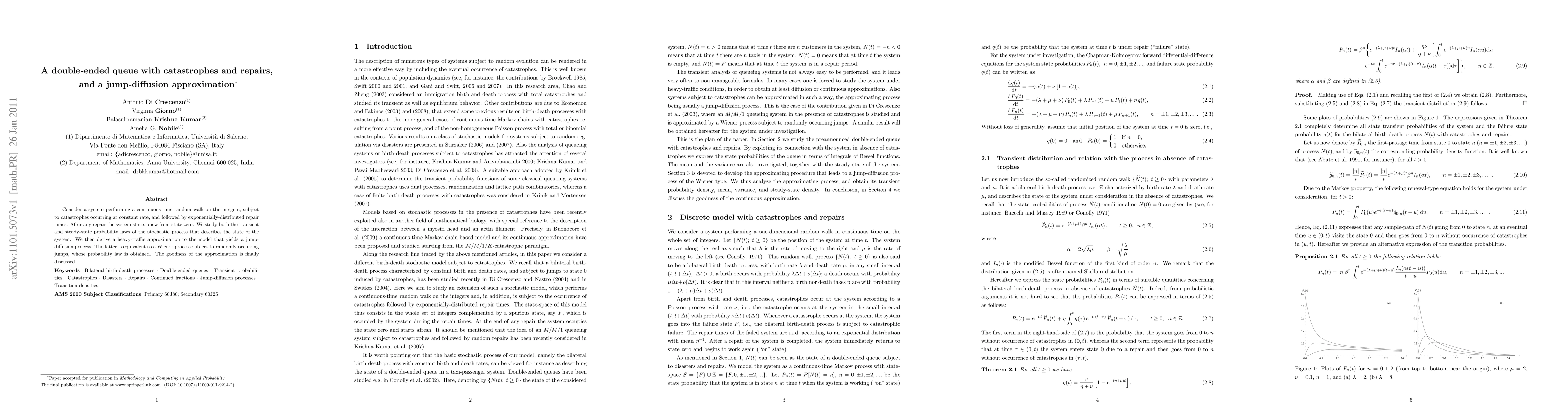 The paper introduces a jump-diffusion approximation for a double-ended queue with catastrophes and repairs, extending existing queueing theory models.