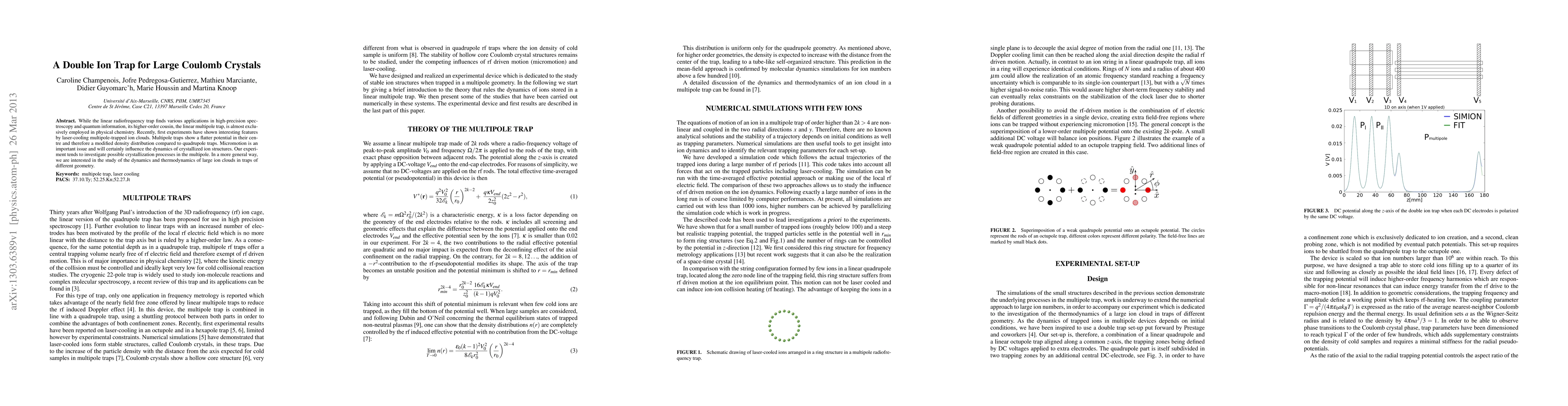 This paper explores the use of a double ion trap to study the crystallization processes in multipole traps, which have a flatter central potential compared to quadrupole traps. The research aims to investigate the dynamics and thermodynamics of large ion clouds in geometrically varied traps.