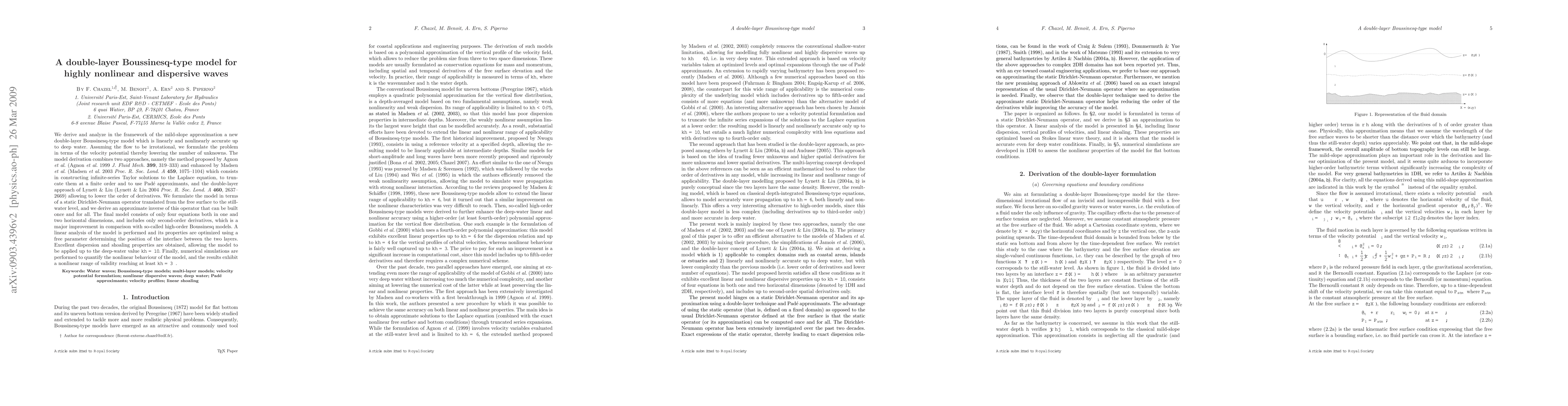 We derive and analyze in the framework of the mild-slope approximation a new double-layer Boussinesq-type model which is linearly and nonlinearly accurate up to deep water. Assuming the flow to be irrotational, we formulate the problem in terms of the velocity potential thereby lowering the number of unknowns. The model derivation combines two approaches, namely the method proposed by Agnon et al. (Agnon et al. 1999, J. Fluid Mech., 399 pp. 319-333) and enhanced by Madsen et al. (Madsen et al. 2003, Proc. R. Soc. Lond. A, 459 pp. 1075-1104) which consists in constructing infinite-series Taylor solutions to the Laplace equation, to truncate them at a finite order and to use Pad\'e approximants, and the double-layer approach of Lynett & Liu (Lynett & Liu 2004, Proc. R. Soc. Lond. A, 460 pp. 2637-2669) allowing to lower the order of derivatives. We formulate the model in terms of a static Dirichlet-Neumann operator translated from the free surface to the still-water level, and we derive an approximate inverse of this operator that can be built once and for all. The final model consists of only four equations both in one and two horizontal dimensions, and includes only second-order derivatives, which is a major improvement in comparison with so-called high-order Boussinesq models. A linear analysis of the model is performed and its properties are optimized using a free parameter determining the position of the interface between the two layers. Excellent dispersion and shoaling properties are obtained, allowing the model to be applied up to deep water. Finally, numerical simulations are performed to quantify the nonlinear behaviour of the model, and the results exhibit a nonlinear range of validity reaching deep water areas.