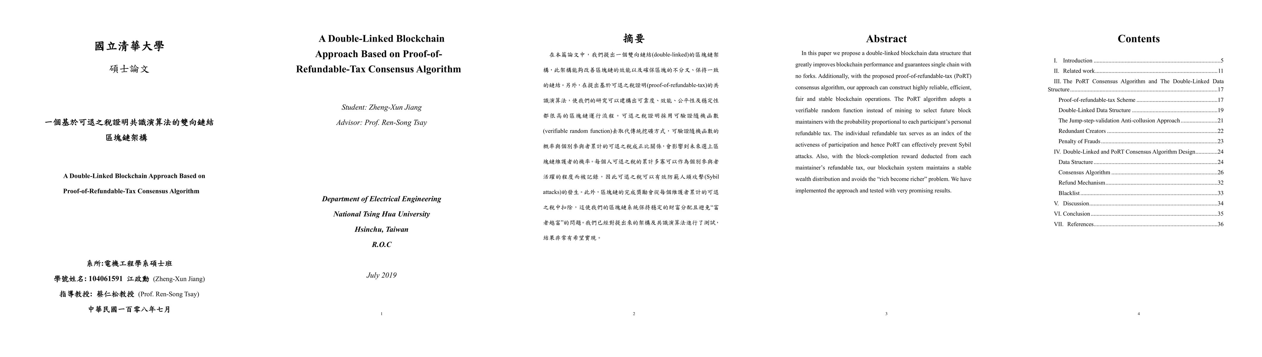 In this paper we propose a double-linked blockchain data structure that greatly improves blockchain performance and guarantees single chain with no forks. Additionally, with the proposed proof-of-refundable-tax (PoRT) consensus algorithm, our approach can construct highly reliable, efficient, fair and stable blockchain operations. The PoRT algorithm adopts a verifiable random function instead of mining to select future block maintainers with the probability proportional to each participant's personal refundable tax. The individual refundable tax serves as an index of the activeness of participation and hence PoRT can effectively prevent Sybil attacks. Also, with the block-completion reward deducted from each maintainer's refundable tax, our blockchain system maintains a stable wealth distribution and avoids the "rich become richer" problem. We have implemented the approach and tested with very promising results.