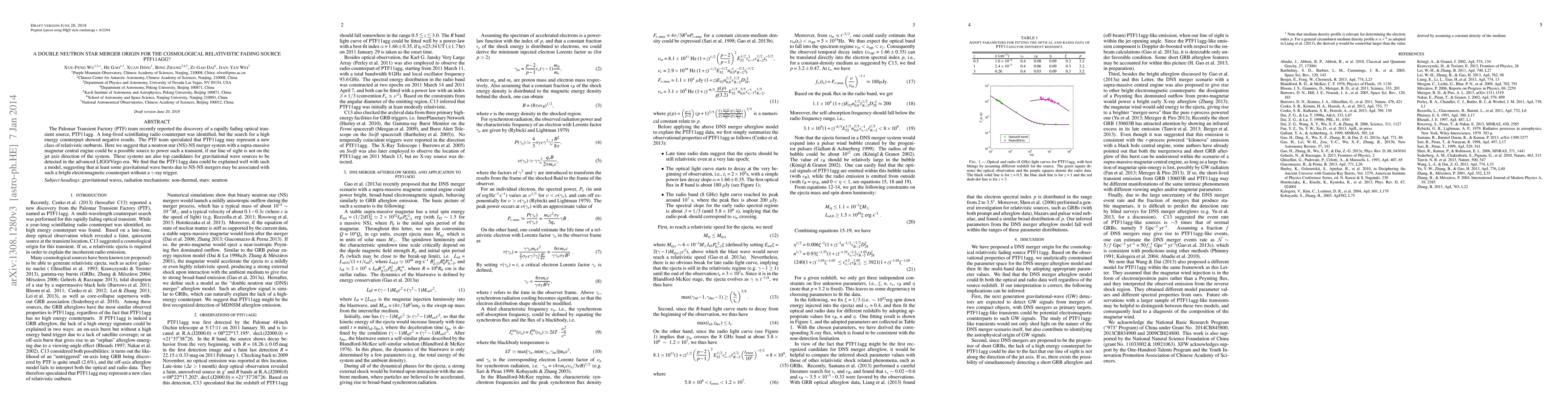 The Palomar Transient Factory (PTF) team recently reported the discovery of a rapidly fading optical transient source, PTF11agg. A long-lived scintillating radio counterpart was identified, but the search for a high energy counterpart showed negative results. The PTF team speculated that PTF11agg may represent a new class of relativistic outbursts. Here we suggest that a neutron star (NS)-NS merger system with a supra-massive magnetar central engine could be a possible source to power such a transient, if our line of sight is not on the jet axis direction of the system. These systems are also top candidates for gravitational wave sources to be detected in the advanced LIGO/Virgo era. We find that the PTF11agg data could be explained well with such a model, suggesting that at least some gravitational wave bursts due to NS-NS mergers may be associated with such a bright electromagnetic counterpart without a \gamma-ray trigger.