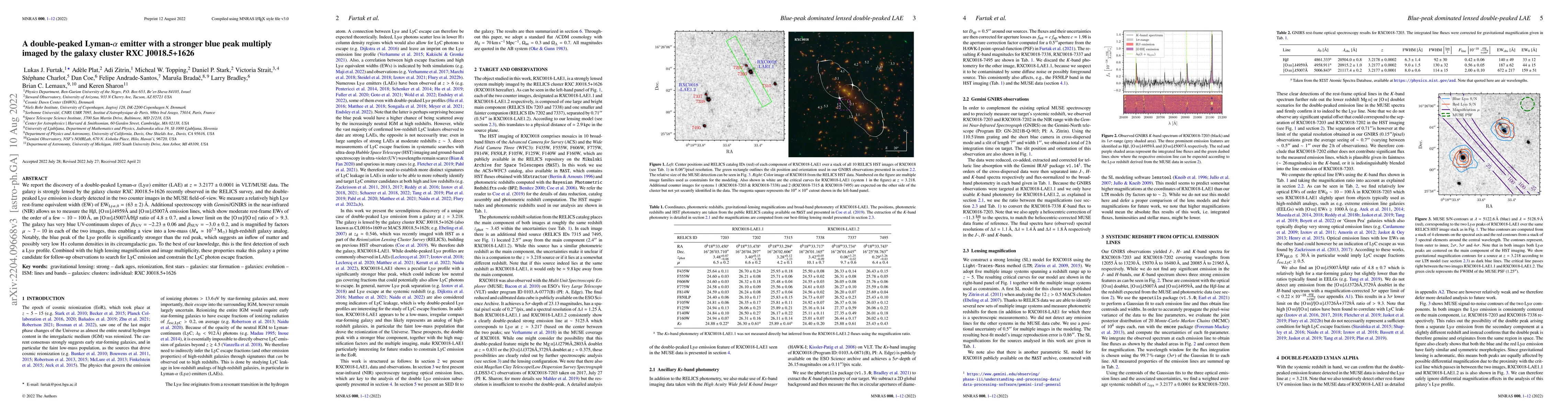 This paper reports the discovery of a double-peaked Lyman-$\alpha$ emitter at $z=3.2177$ strongly lensed by the galaxy cluster RXC J0018.5+1626, revealing a high Ly$\alpha$ equivalent width and blue UV-continuum slopes. The blue peak's dominance suggests low HI column densities and potential inflow of matter, making it a prime candidate for studying LyC emission.