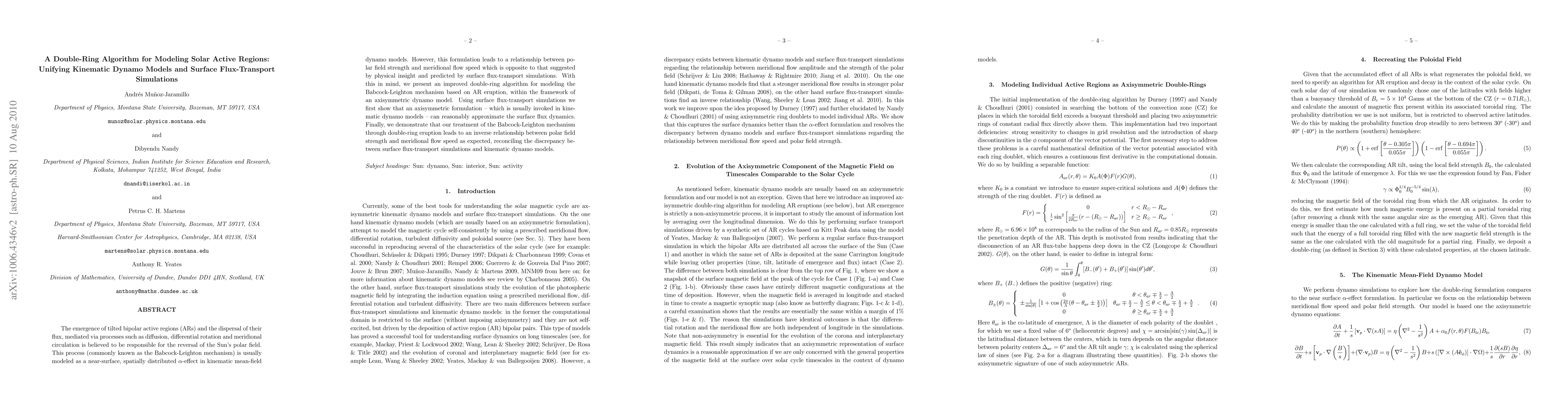 This paper introduces a double-ring algorithm to model solar active regions, aiming to unify kinematic dynamo models with surface flux-transport simulations. The new approach resolves the discrepancy between predicted and observed relationships between polar field strength and meridional flow speed.