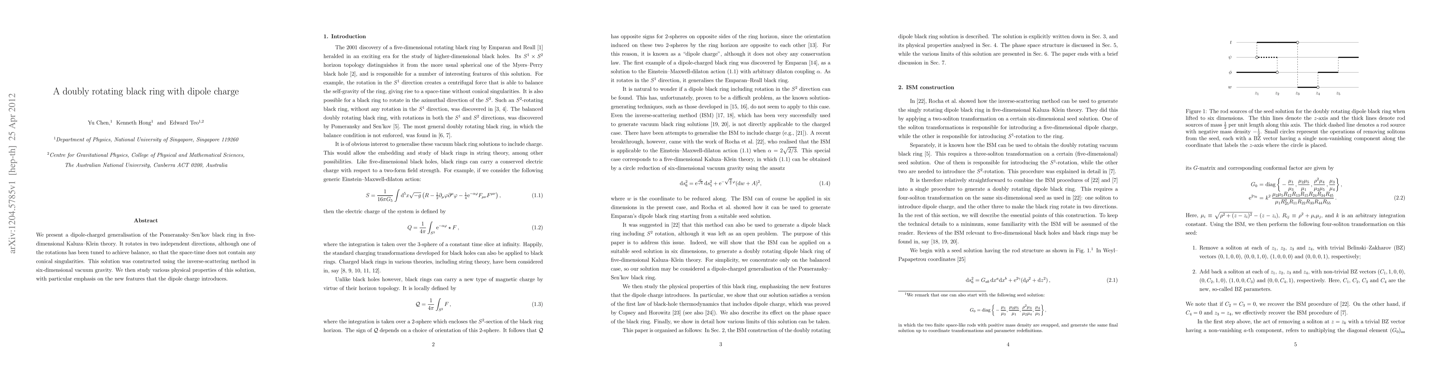 We present a dipole-charged generalisation of the Pomeransky-Sen'kov black ring in five-dimensional Kaluza-Klein theory. It rotates in two independent directions, although one of the rotations has been tuned to achieve balance, so that the space-time does not contain any conical singularities. This solution was constructed using the inverse-scattering method in six-dimensional vacuum gravity. We then study various physical properties of this solution, with particular emphasis on the new features that the dipole charge introduces.