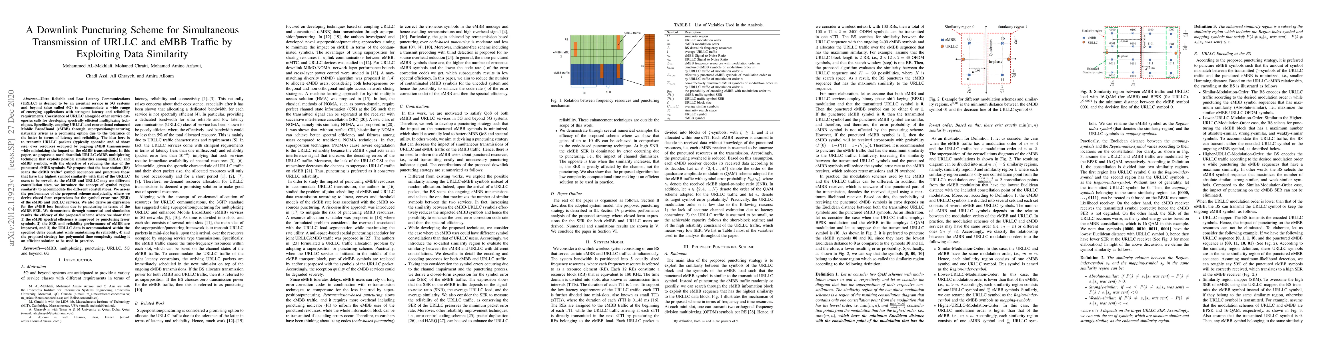 This paper proposes a novel downlink multiplexing scheme for simultaneous transmission of URLLC and eMBB traffic by exploiting data similarity, aiming to reduce the size of punctured eMBB symbols. The scheme improves eMBB spectral efficiency and performance while accommodating URLLC within delay constraints.