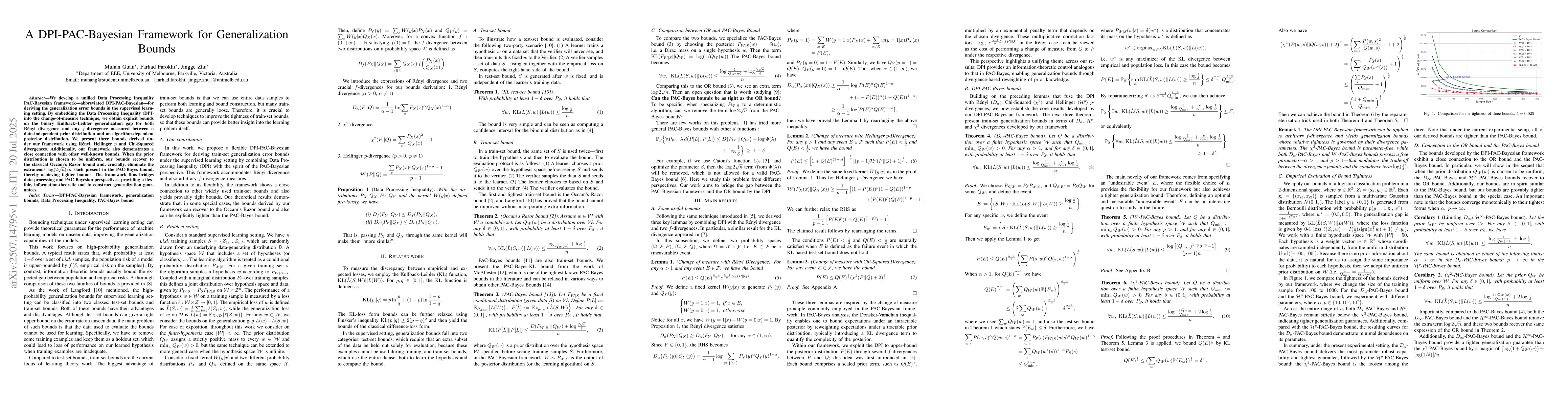 We develop a unified Data Processing Inequality PAC-Bayesian framework -- abbreviated DPI-PAC-Bayesian -- for deriving generalization error bounds in the supervised learning setting. By embedding the Data Processing Inequality (DPI) into the change-of-measure technique, we obtain explicit bounds on the binary Kullback-Leibler generalization gap for both R\'enyi divergence and any $f$-divergence measured between a data-independent prior distribution and an algorithm-dependent posterior distribution. We present three bounds derived under our framework using R\'enyi, Hellinger \(p\) and Chi-Squared divergences. Additionally, our framework also demonstrates a close connection with other well-known bounds. When the prior distribution is chosen to be uniform, our bounds recover the classical Occam's Razor bound and, crucially, eliminate the extraneous \(\log(2\sqrt{n})/n\) slack present in the PAC-Bayes bound, thereby achieving tighter results. The framework thus bridges data-processing and PAC-Bayesian perspectives, providing a flexible, information-theoretic tool to construct generalization guarantees.