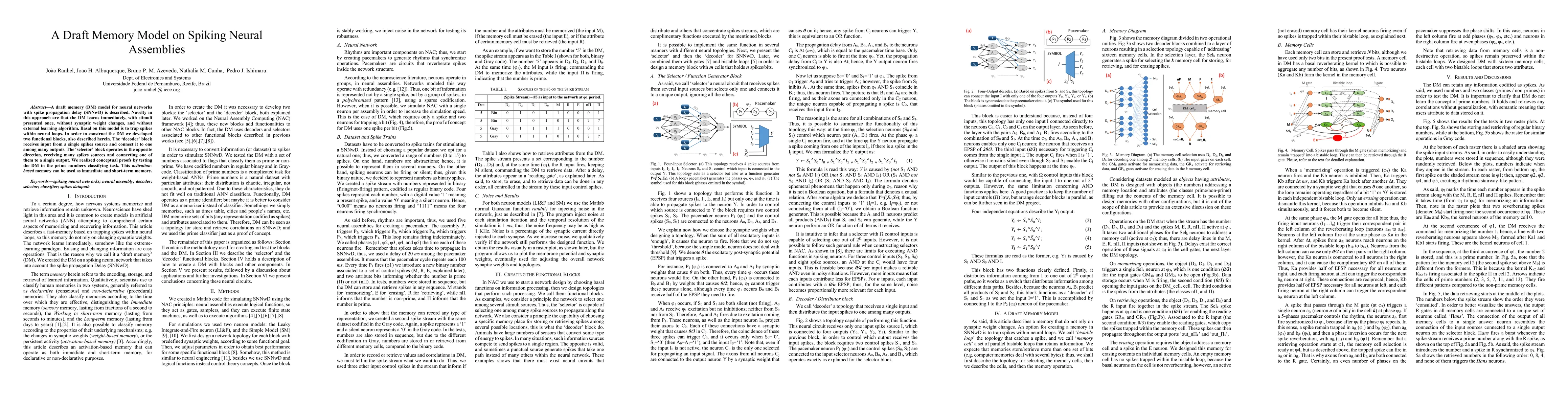 A draft memory model (DM) for neural networks with spike propagation delay (SNNwD) is described. Novelty in this approach are that the DM learns immediately, with stimuli presented once, without synaptic weight changes, and without external learning algorithm. Basal on this model is to trap spikes within neural loops. In order to construct the DM we developed two functional blocks, also described herein. The decoder block receives input from a single spikes source and connect it to one among many outputs. The selector block operates in the opposite direction, receiving many spikes sources and connecting one of them to a single output. We realized conceptual proofs by testing the DM in the prime numbers classifying task. This activation-based memory can be used as immediate and short-term memory.