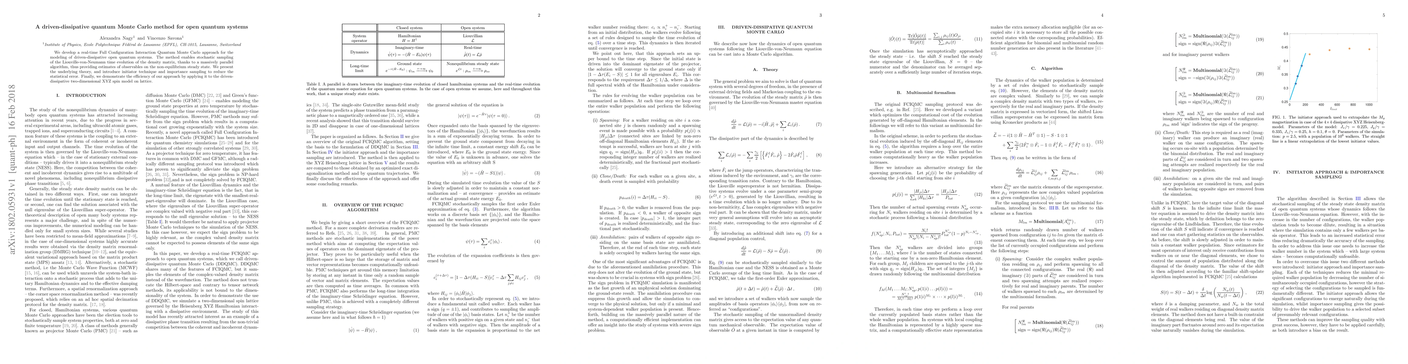 We develop a real-time Full Configuration Interaction Quantum Monte Carlo approach for the modeling of driven-dissipative open quantum systems. The method enables stochastic sampling of the Liouville-von-Neumann time evolution of the density matrix, thanks to a massively parallel algorithm, thus providing estimates of observables on the non-equilibrium steady state. We present the underlying theory, and introduce initiator technique and importance sampling to reduce the statistical error. Finally, we demonstrate the efficiency of our approach by applying it to the driven- dissipative two-dimensional XYZ spin model on lattice.