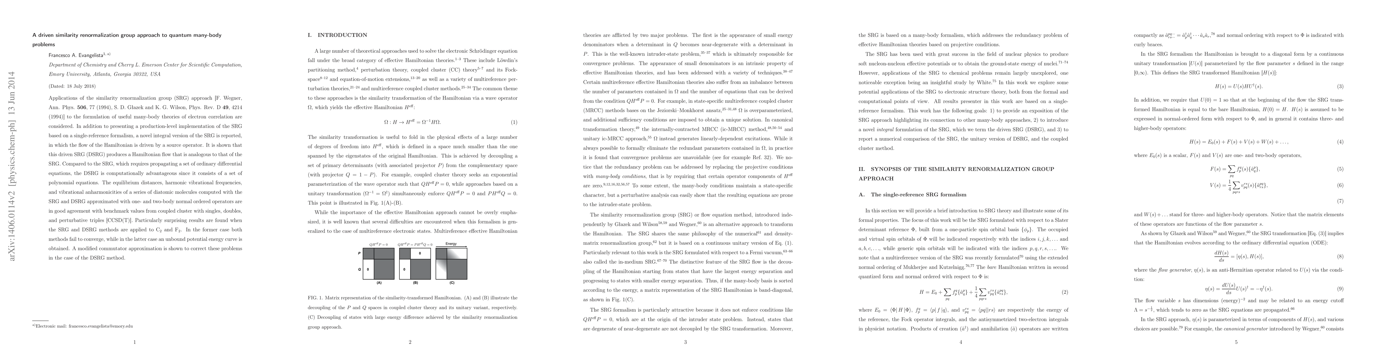 Applications of the similarity renormalization group (SRG) approach [F. Wegner, Ann. Phys. 506, 77 (1994), S. D. G{\l}azek and K. G. Wilson, Phys. Rev. D 49, 4214 (1994)] to the formulation of useful many-body theories of electron correlation are considered. In addition to presenting a production-level implementation of the SRG based on a single-reference formalism, a novel integral version of the SRG is reported, in which the flow of the Hamiltonian is driven by a source operator. It is shown that this driven SRG (DSRG) produces a Hamiltonian flow that is analogous to that of the SRG. Compared to the SRG, which requires propagating a set of ordinary differential equations, the DSRG is computationally advantageous since it consists of a set of polynomial equations. The equilibrium distances, harmonic vibrational frequencies, and vibrational anharmonicities of a series of diatomic molecules computed with the SRG and DSRG approximated with one- and two-body normal ordered operators are in good agreement with benchmark values from coupled cluster with singles, doubles, and perturbative triples [CCSD(T)]. Particularly surprising results are found when the SRG and DSRG methods are applied to C$_2$ and F$_2$. In the former case both methods fail to converge, while in the latter case an unbound potential energy curve is obtained. A modified commutator approximation is shown to correct these problems in the case of the DSRG method.
