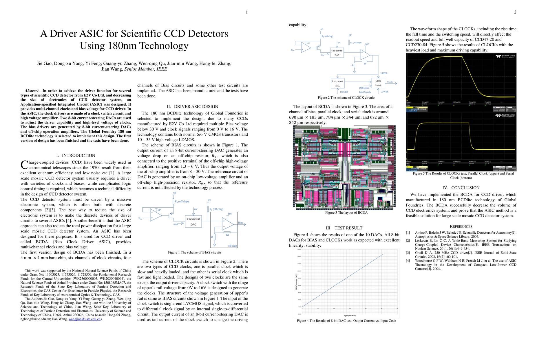 An Application-specified Integrated Circuit (ASIC) was designed for multi-channel clock and bias voltage provision to scientific CCD detectors. Utilizing Global Foundry's 180 nm BCDlite technology, the ASIC incorporates clock switch circuits, high voltage amplifiers, and 8-bit current-steering Digital-to-Analog Converters (DACs). Initial design version completed with successful testing.