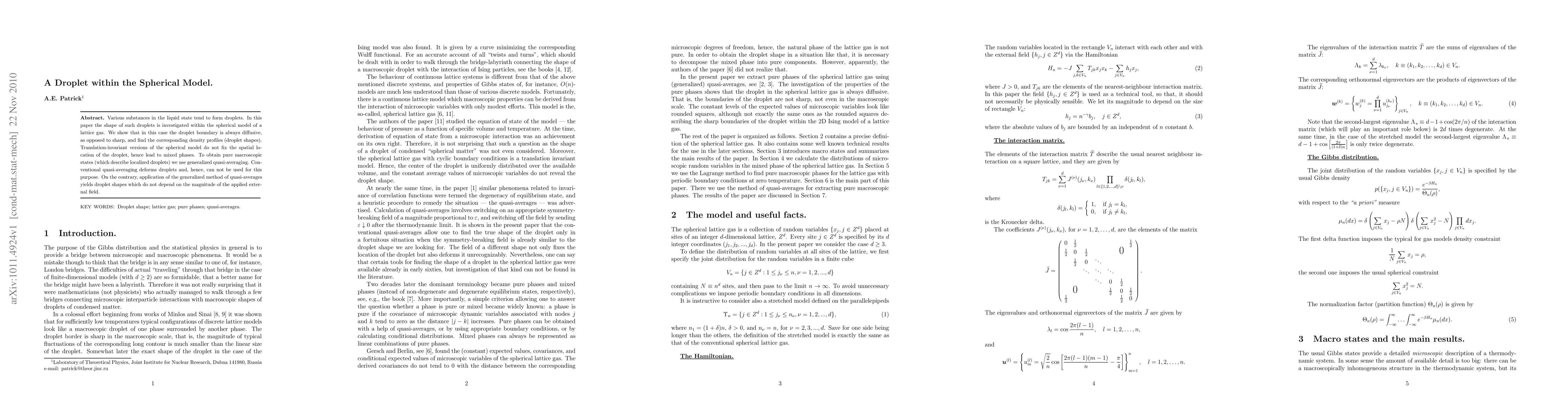 This paper explores droplet shapes in a spherical lattice gas model, finding they are always diffusive, not sharp. Using generalized quasi-averaging, it obtains stable, field-independent droplet shapes for pure macroscopic states.