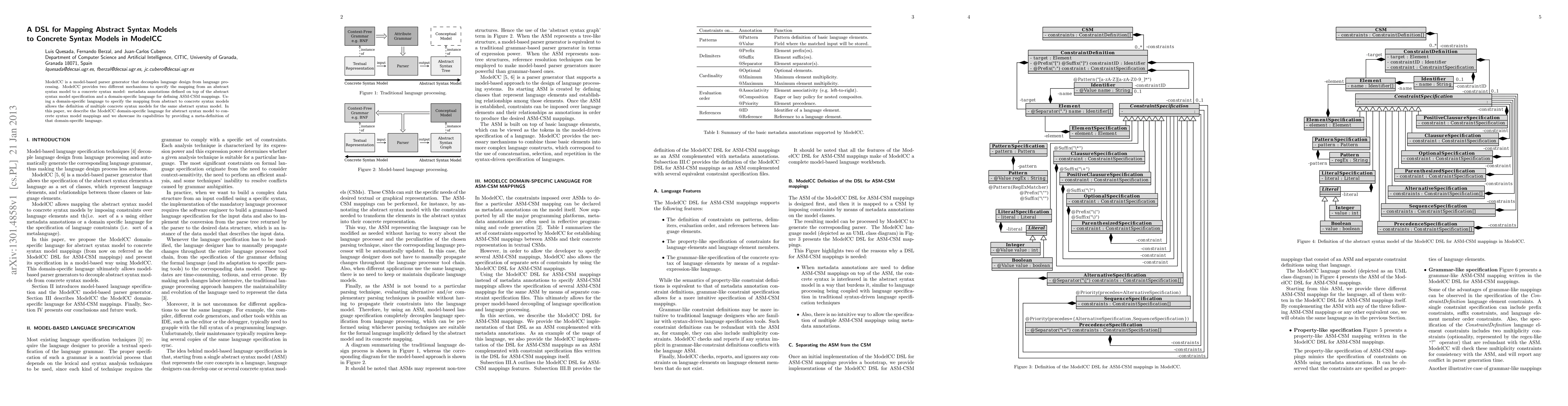 This paper introduces a DSL in ModelCC for mapping abstract syntax models to concrete syntax models, enabling multiple concrete syntax representations for a single abstract syntax. It details the language's capabilities and provides a meta-definition of the DSL itself.