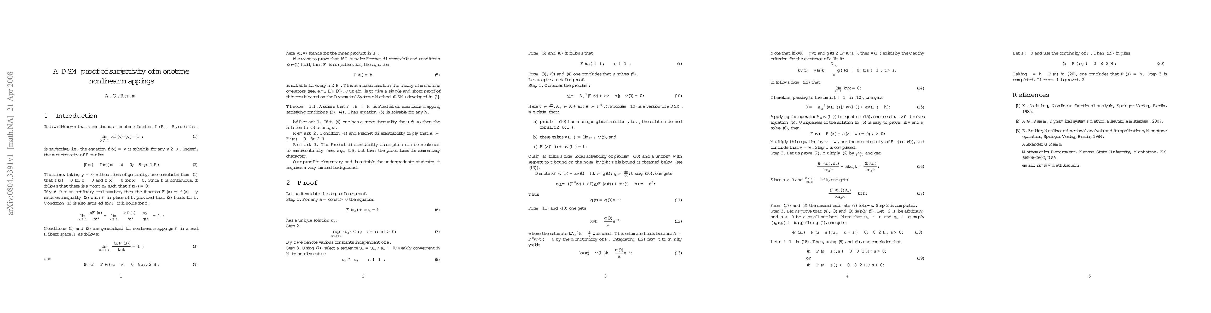 We prove that if $F$ is twice Frechet differentiable and coercivity conditions hold, then $F$ is surjective, i.e., the equation $F(u)=h$ is solvable for every $h\in H$. This is a basic result in the theory of monotone operators. Our aim is to give a simple and short proof of this result based on the Dynamical Systems Method (DSM), developed in the monograph A.G. Ramm, Dynamical systems method, Elsevier, Amsterdam, 2007.