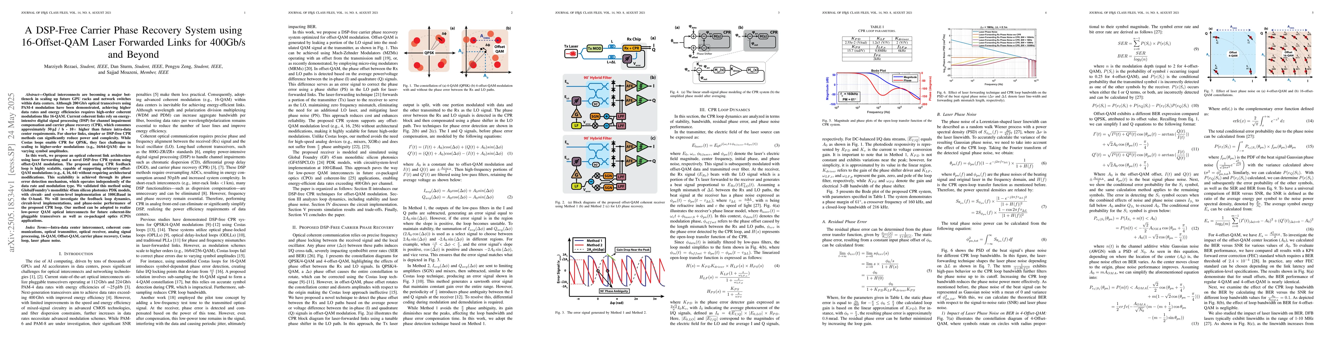 Researchers propose a new DSP-free carrier phase recovery system for high-speed optical interconnects using 16-QAM laser, aiming to reduce power consumption and complexity.
