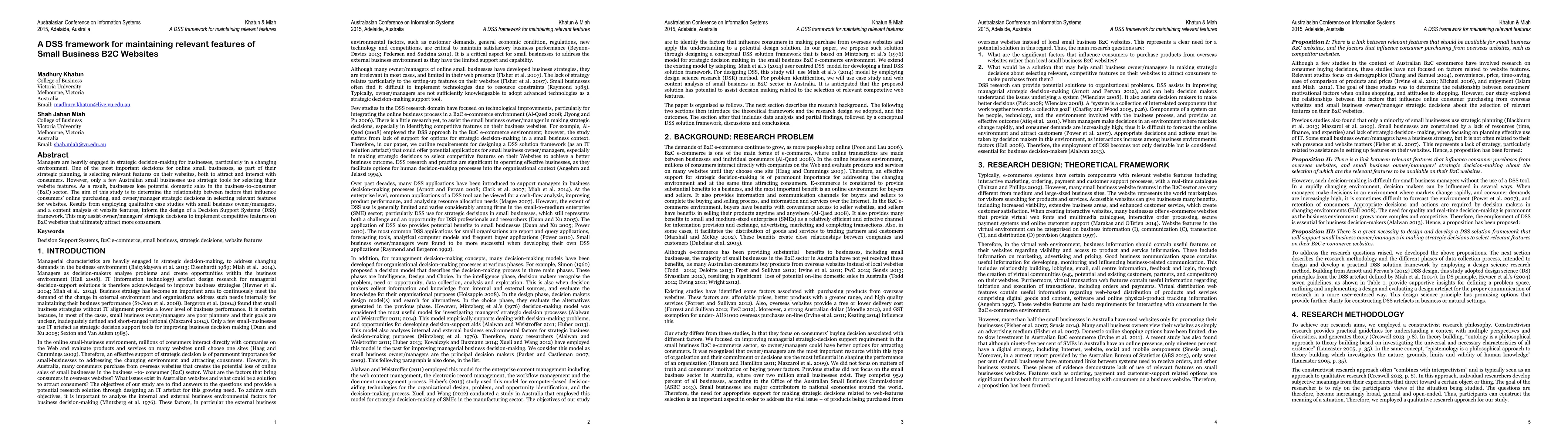 Managers are heavily engaged in strategic decision-making for businesses, particularly in a changing environment. One of the most important decisions for online small businesses, as part of their strategic planning, is selecting relevant features on their websites, both to attract and interact with consumers. However, only a few Australian small businesses use strategic tools for selecting their website features. As a result, businesses lose potential domestic sales in the business-to-consumer (B2C) sector. The aim of this study is to determine the relationship between factors that influence consumers' online purchasing, and owner/manager strategic decisions in selecting relevant features for websites. Results from employing qualitative case studies with small business owner/managers, and a content analysis of website features, inform the design of a Decision Support Systems (DSS) framework. This may assist owner/managers' strategic decisions to implement competitive features on B2C websites that ultimately attract more consumers.