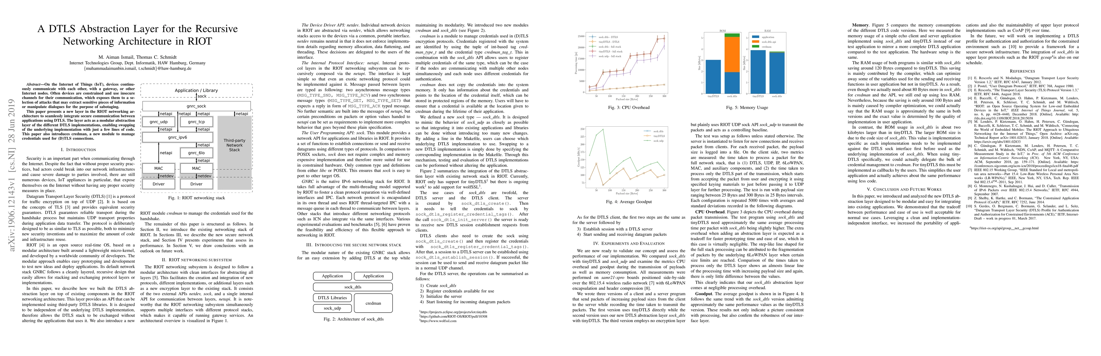 This paper introduces a DTLS abstraction layer in the RIOT networking architecture to facilitate secure communication among IoT devices, allowing easy swapping of DTLS implementations. It also presents credman, a module for managing credentials for secure (D)TLS connections.