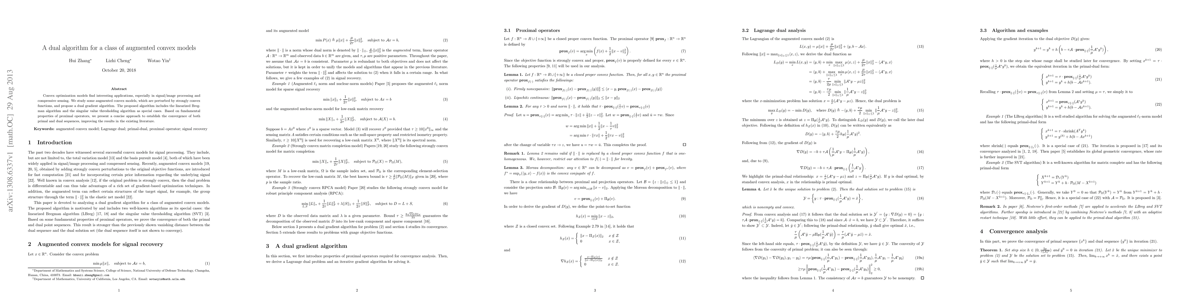 Convex optimization models find interesting applications, especially in signal/image processing and compressive sensing. We study some augmented convex models, which are perturbed by strongly convex functions, and propose a dual gradient algorithm. The proposed algorithm includes the linearized Bregman algorithm and the singular value thresholding algorithm as special cases. Based on fundamental properties of proximal operators, we present a concise approach to establish the convergence of both primal and dual sequences, improving the results in the existing literature.