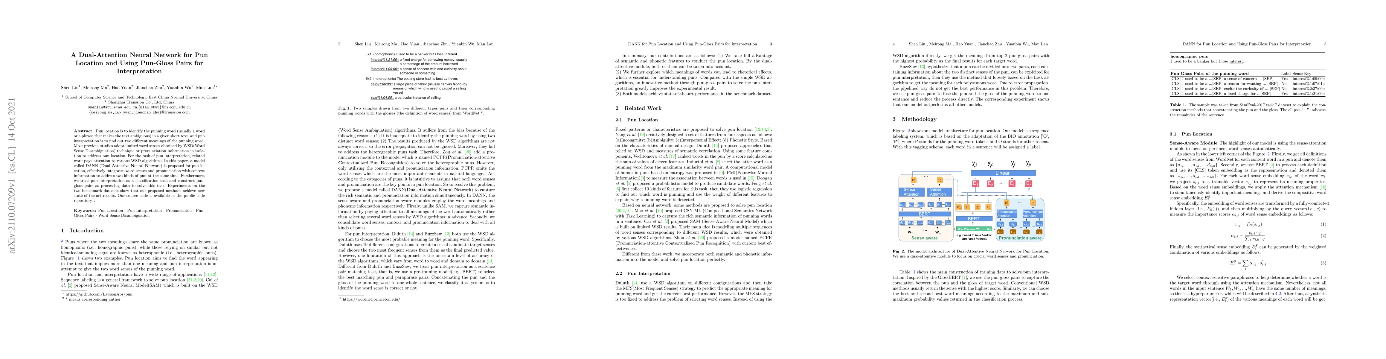 A new neural network model called DANN is proposed to identify puns in short texts and classify their interpretations, achieving state-of-the-art results on benchmark datasets.