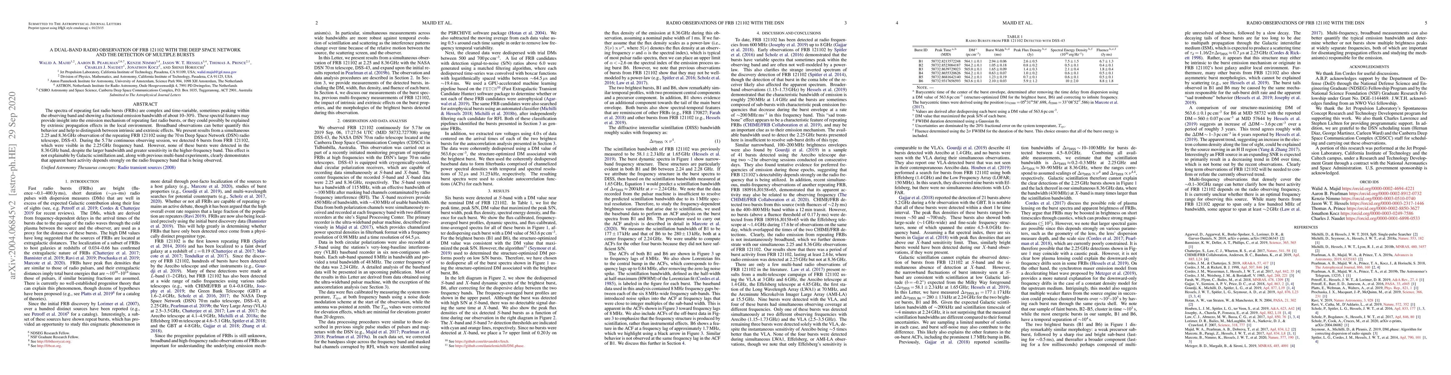 Researchers observed repeating fast radio bursts in two frequency bands and found that only some bursts were detectable in lower-frequency band, suggesting that burst activity depends on the observation frequency.