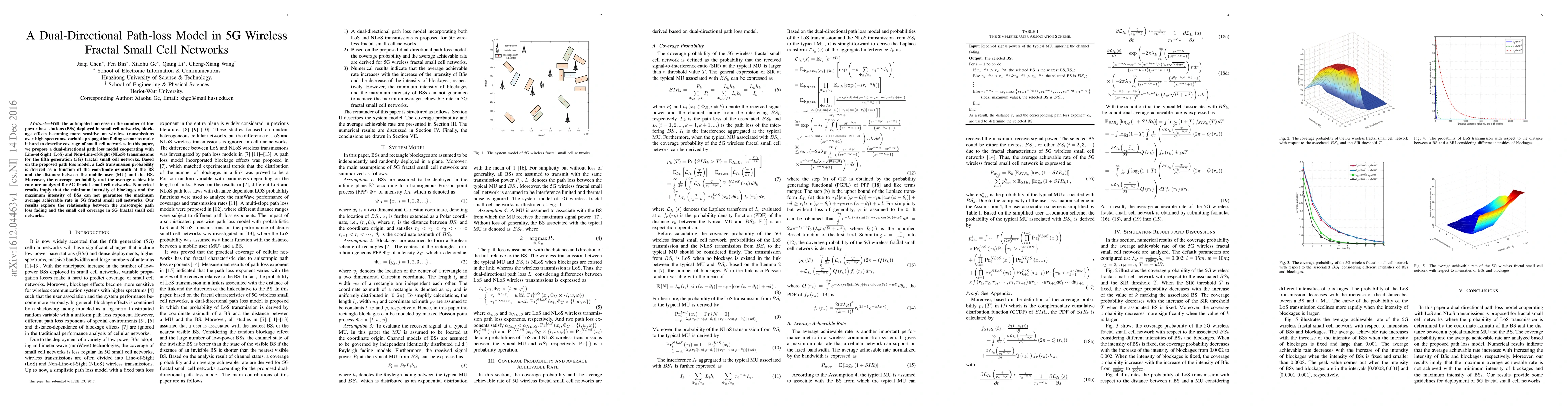 This paper proposes a dual-directional path loss model for 5G fractal small cell networks, considering both Line-of-Sight and Non-Line-of-Sight transmissions. It finds that the maximum average achievable rate is not guaranteed by the minimum blockage intensity and maximum base station density, highlighting the complex relationship between path loss fading and coverage.