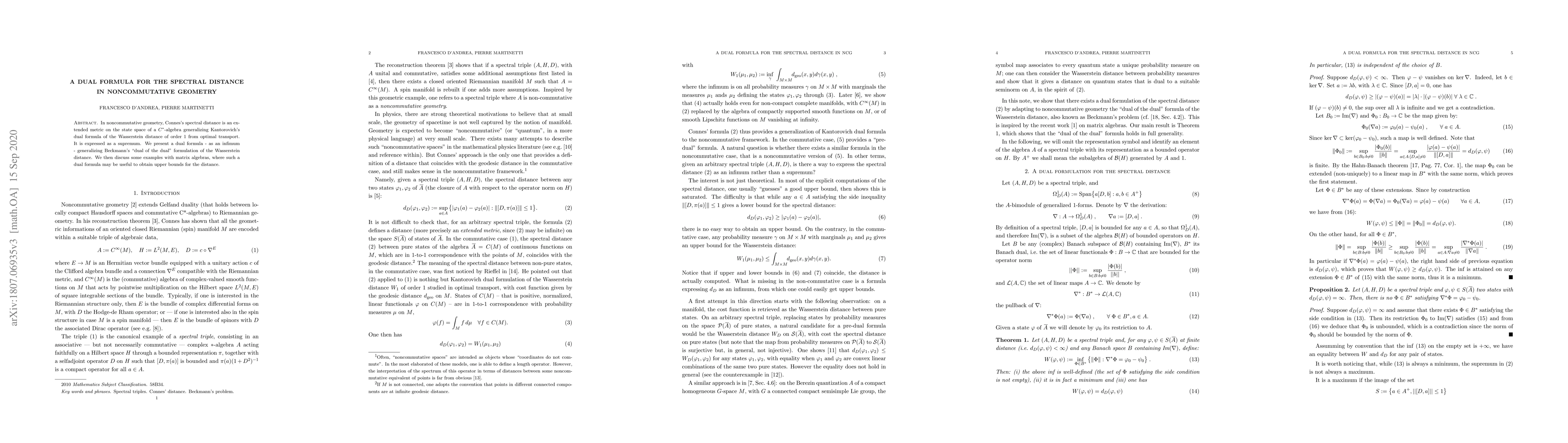 This paper introduces a dual formula for Connes's spectral distance in noncommutative geometry, expressed as an infimum and generalizing Beckmann's dual formulation of the Wasserstein distance. The authors apply this approach to matrix algebras to derive upper bounds for the distance.