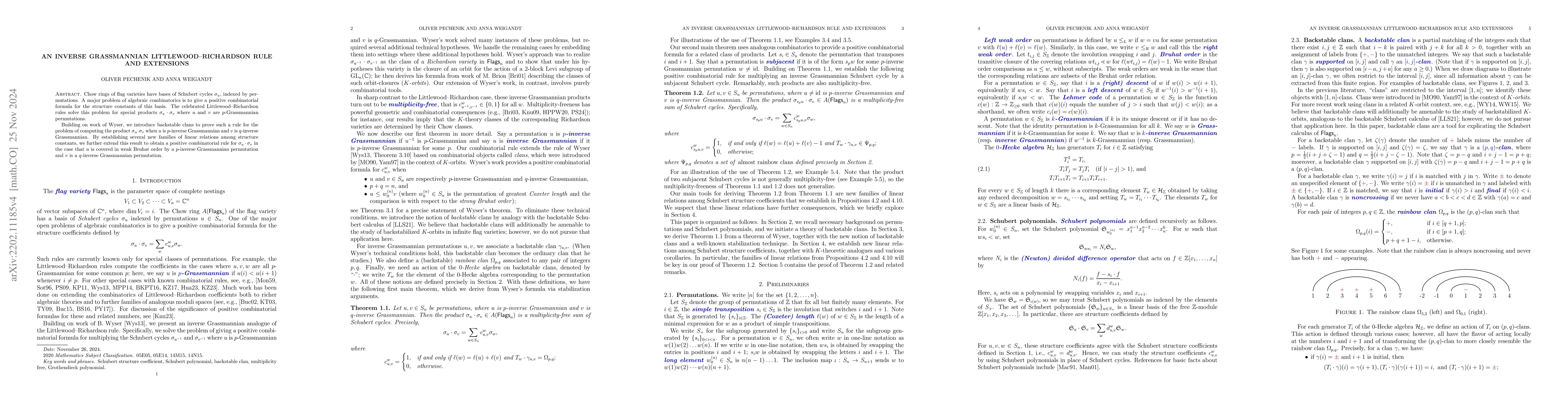 Littlewood-Richardson coefficients are nonnegative integers that play a pivotal role in combinatorial algebra, bridging the representation theory of symmetric and general linear groups, the Chow rings of Grassmannians, and eigenvalues of Hermitian matrices. Littlewood-Richardson rules are positive combinatorial formulas for Littlewood-Richardson coefficients that manifest their nonnegativity. More generally, Chow rings of flag varieties have bases of Schubert cycles $\sigma_u$, indexed by permutations. Here, the Littlewood-Richardson coefficients describe special products $\sigma_u \cdot \sigma_v$ where $u$ and $v$ are $p$-Grassmannian permutations. Building on work on Wyser, we introduce backstable clans to prove a "dual" Littlewood-Richardson rule for the product $\sigma_u \cdot \sigma_v$ when $u$ and $v$ are inverse to $p$-Grassmannian permutations. Moreover, our positive combinatorial rule extends to the case where $u$ is $p$-inverse Grassmannian and $v$ is $q$-inverse Grassmannian. We further give a positive combinatorial rule for $\sigma_u \cdot \sigma_v$ in the case that $u$ is $p$-inverse Grassmannian and $v$ is covered in weak Bruhat order by a $q$-inverse Grassmannian permutation.